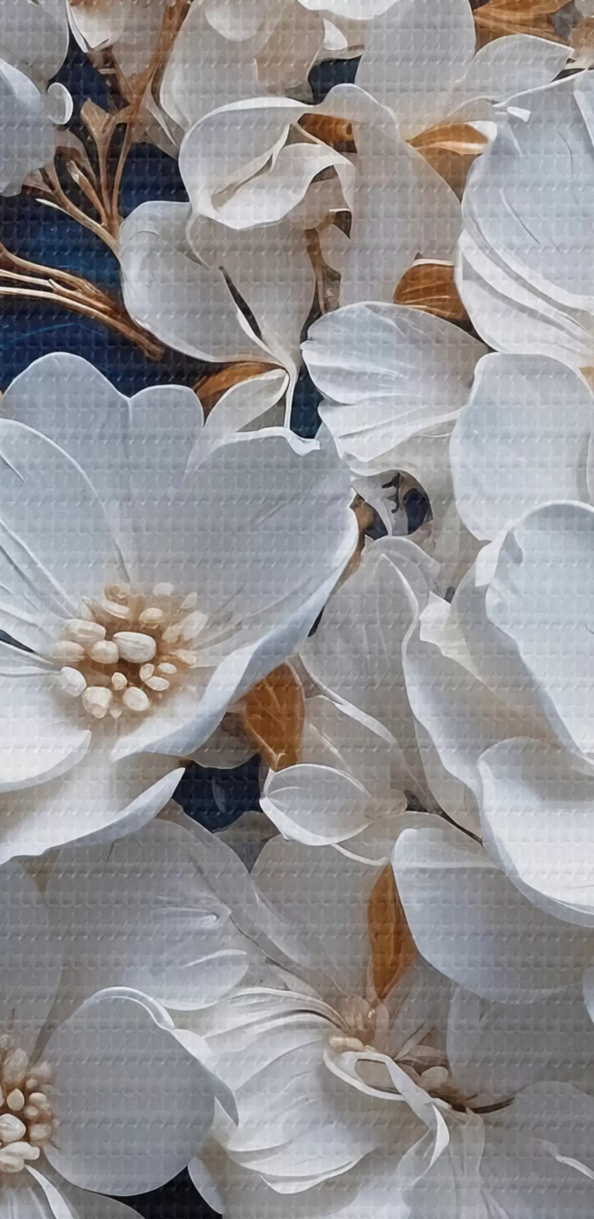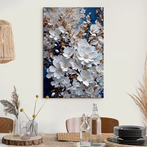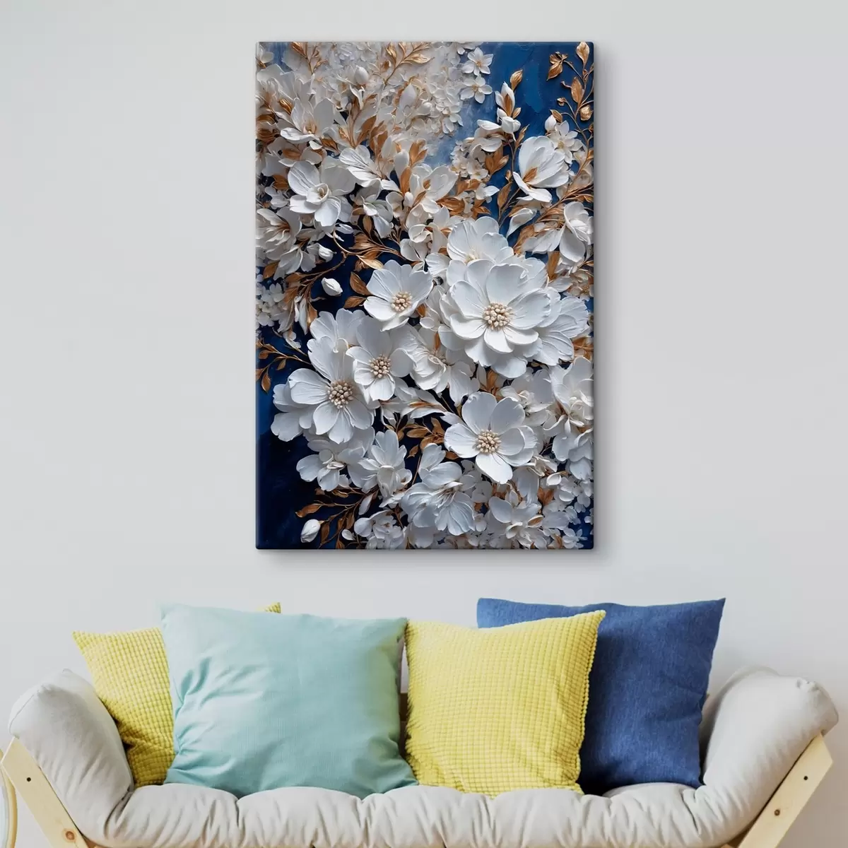 Schilderij Witte bloemen op blauwe achtergrond Art. s43116
