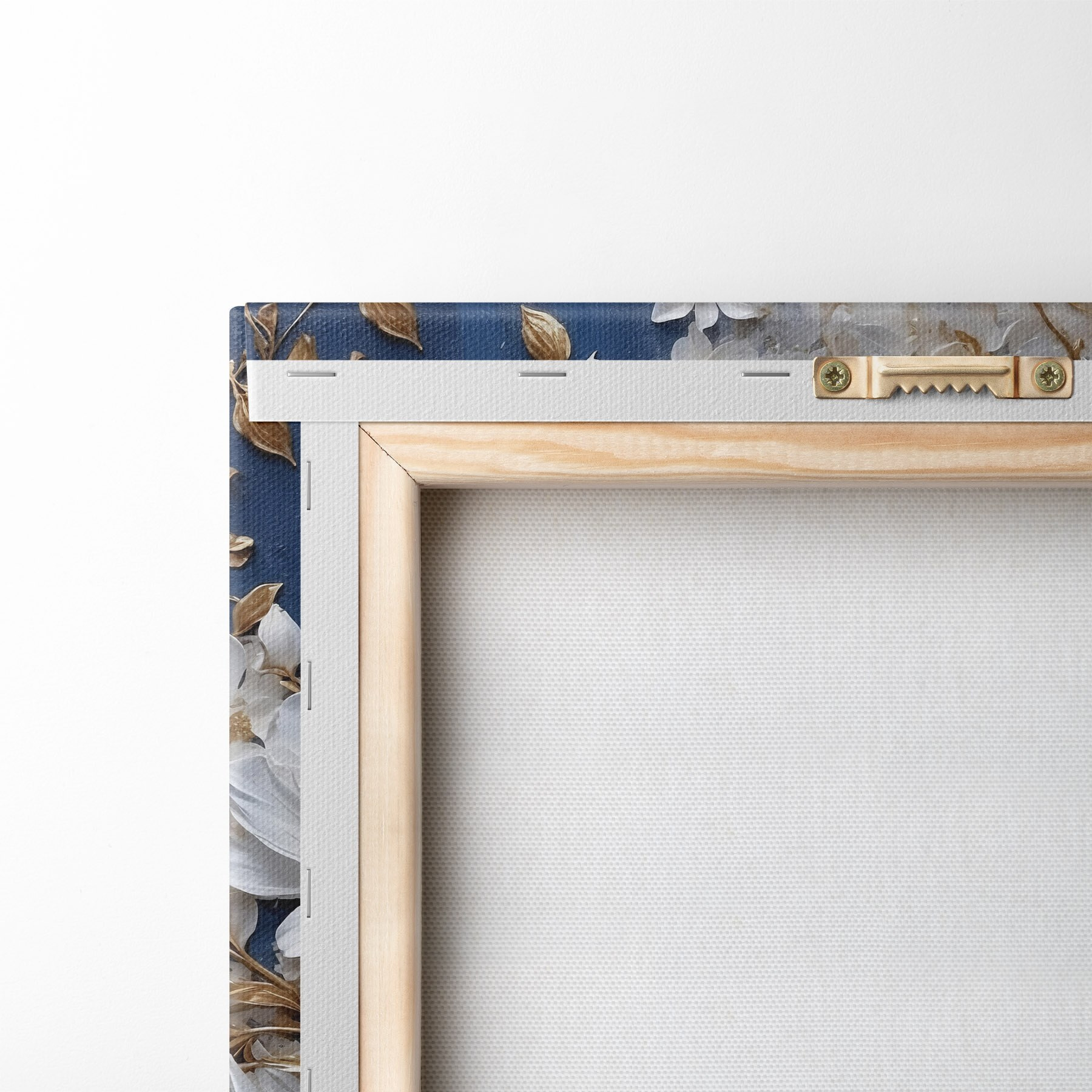 Schilderijen Witte bloemen op blauwe achtergrond s43116