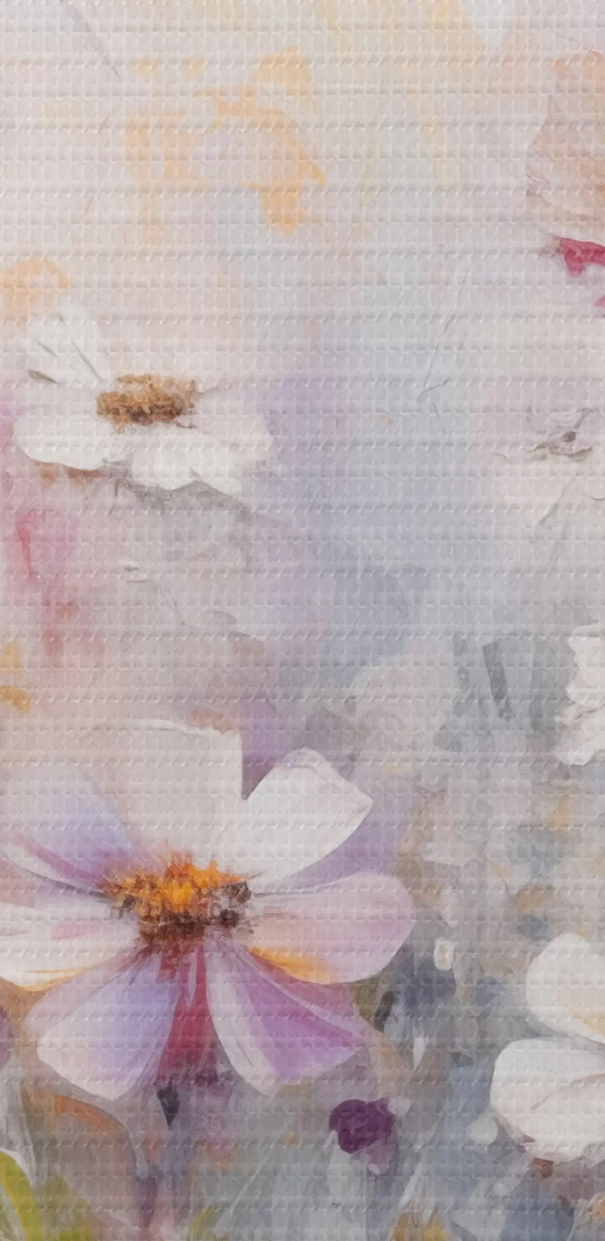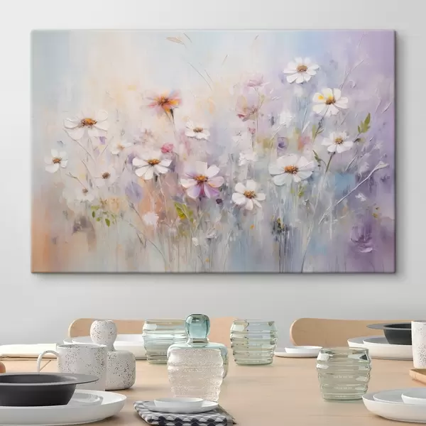 Schilderij Abstract structuurveld van witte en roze bloemen, zachte pastelkleuren, fijne penseelstreken, bloemenweide Art. s43170