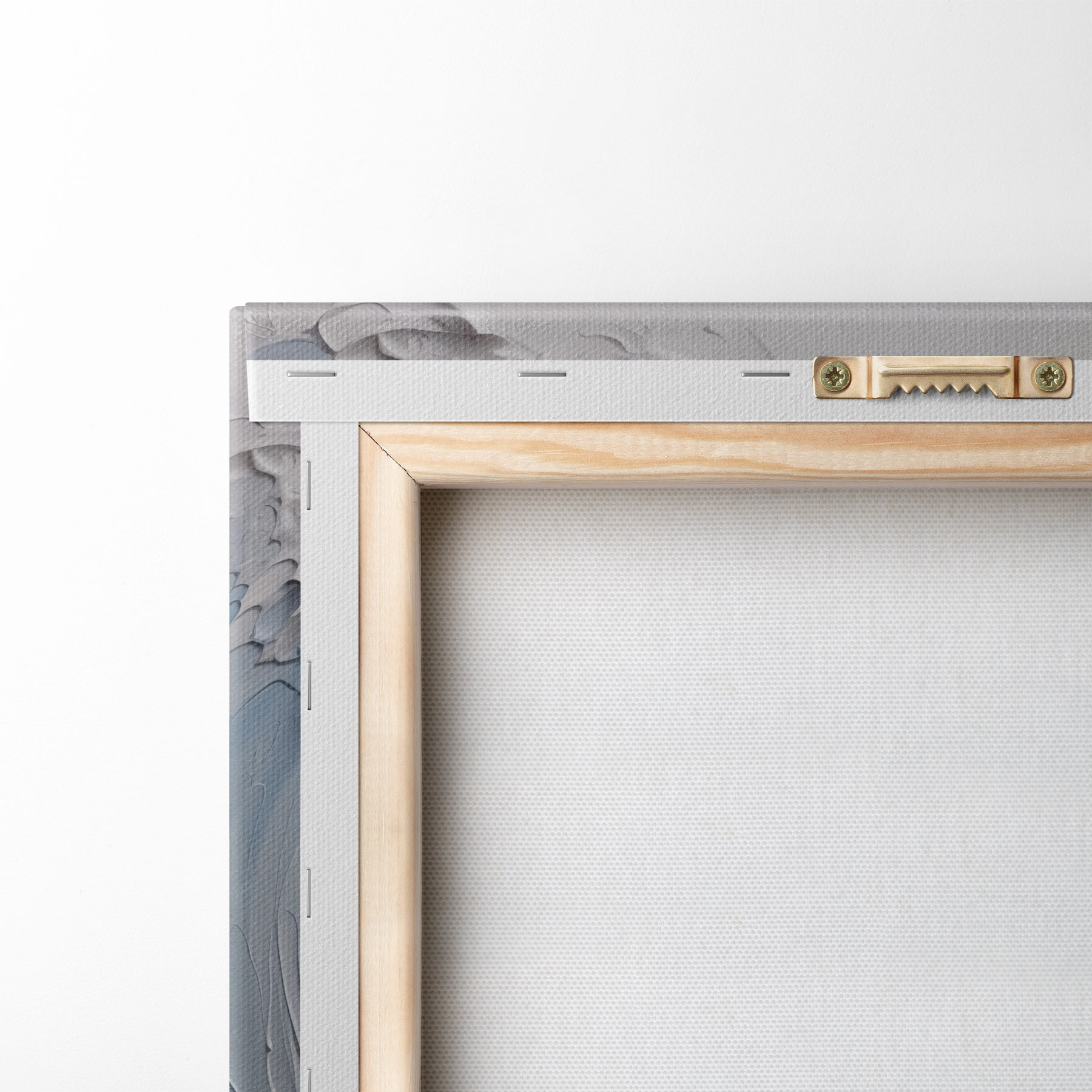 Het schilderij kan direct na ontvangst worden opgehangen. Het schilderij wordt opgespannen op een 2 cm breed houten spieraam.
