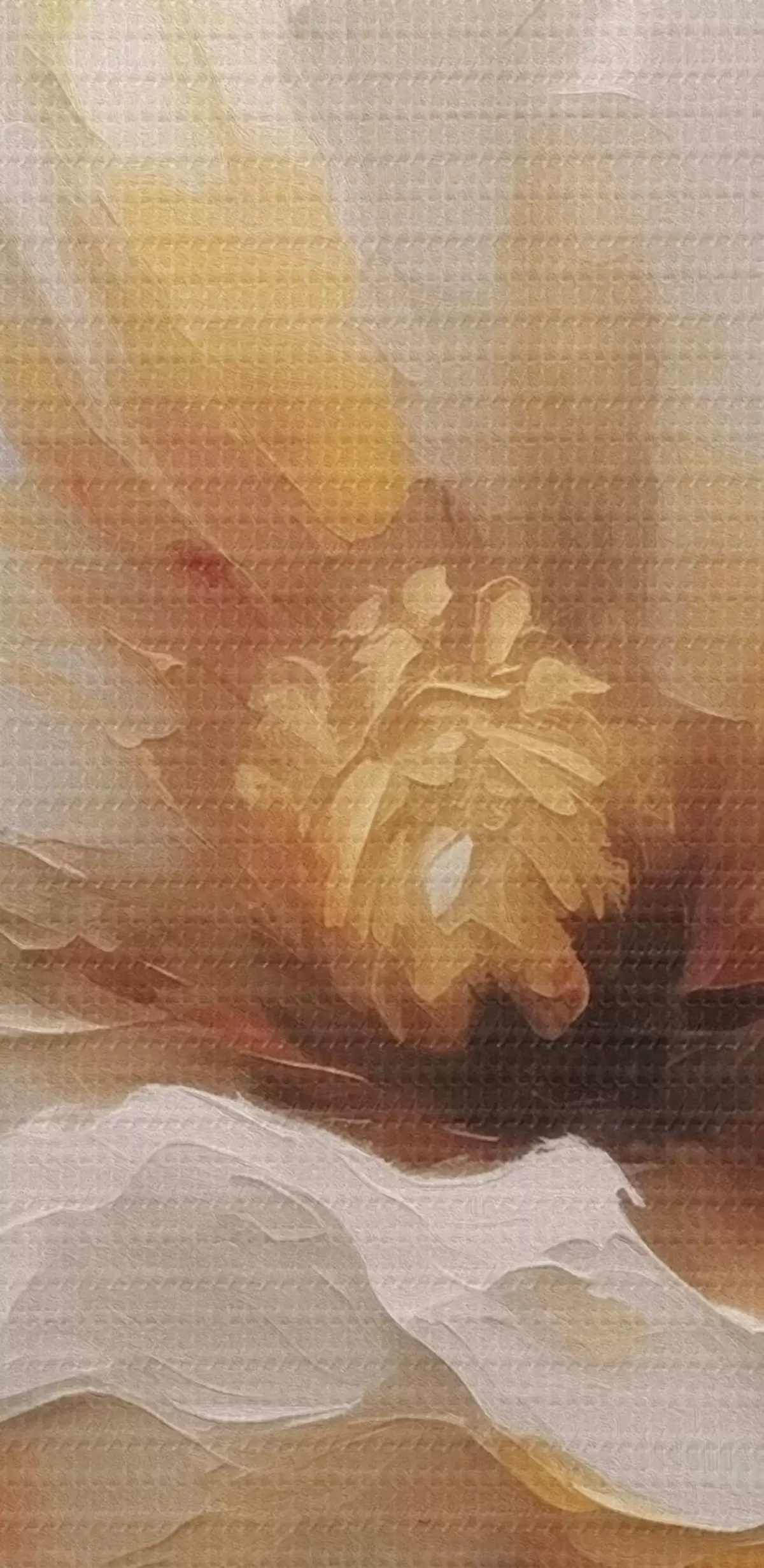 De fijne weving van draden op dit doek lijkt op het oppervlak van professionele schildersdoeken.
