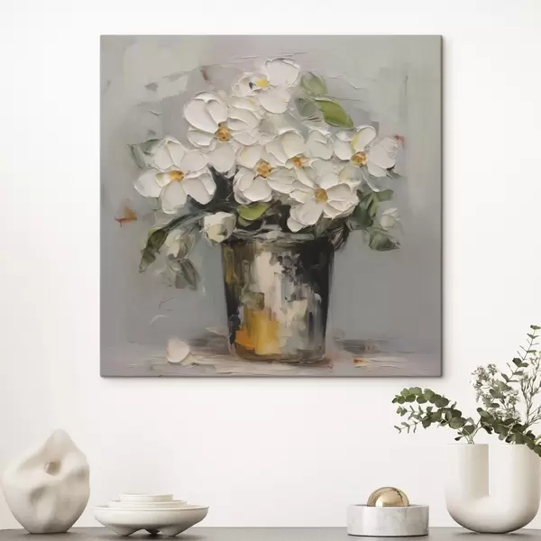 Schilderijen Bloemen in een emmer imitatie van schilderij s43228