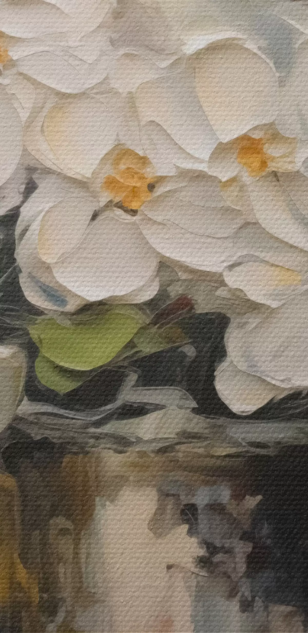 De fijne weving van draden op dit doek lijkt op het oppervlak van professionele schildersdoeken.