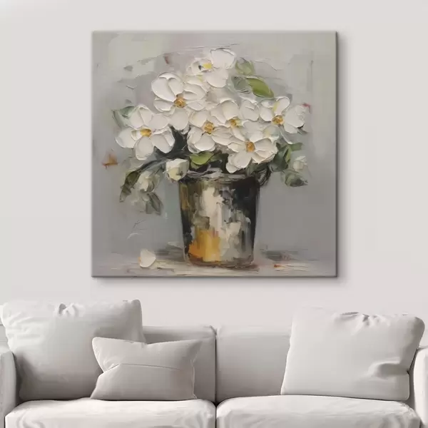 Er zijn drie soorten materiaal te bestellen: Economic Canvas - een dicht en duurzaam materiaal voor digitaal printen, identiek aan schildersdoek, waterdicht oppervlak, realistische weergave van details, materiaal met gemiddelde korrel. Premium Canvas - de textuur lijkt op die van schildersdoek (verweven kleine draden). Zachte, gedetailleerde reproductie van de afbeelding op een mat oppervlak. Eco-Premium - hoogwaardige 100% katoenen stof. Dankzij de natuurlijke katoenvezels is het materiaal duurzaam en slijtvast. Uitstekende kleurweergave en detail.