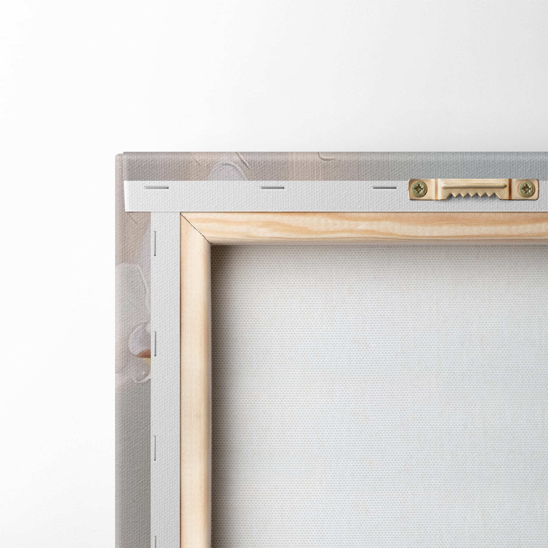 Je kunt het schilderij ophangen aan schroeven. Hiervoor leveren we bevestigingen bij onze foto's, zodat je de foto gemakkelijk kunt ophangen.