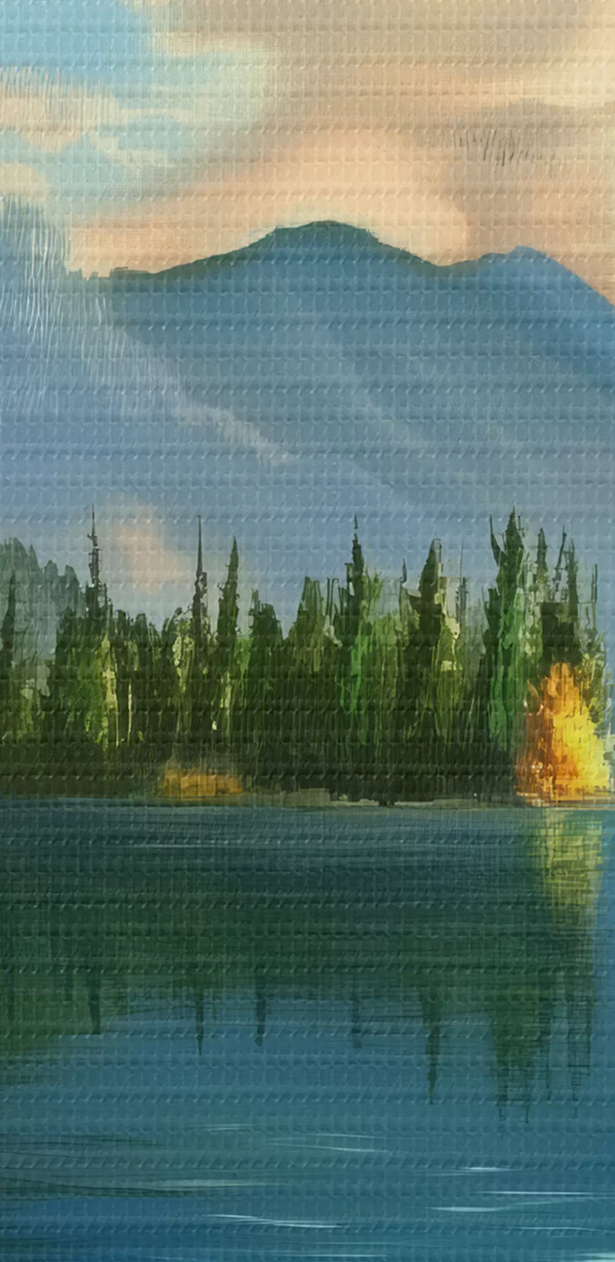 De fijne weving van draden op dit doek lijkt op het oppervlak van professionele schildersdoeken.