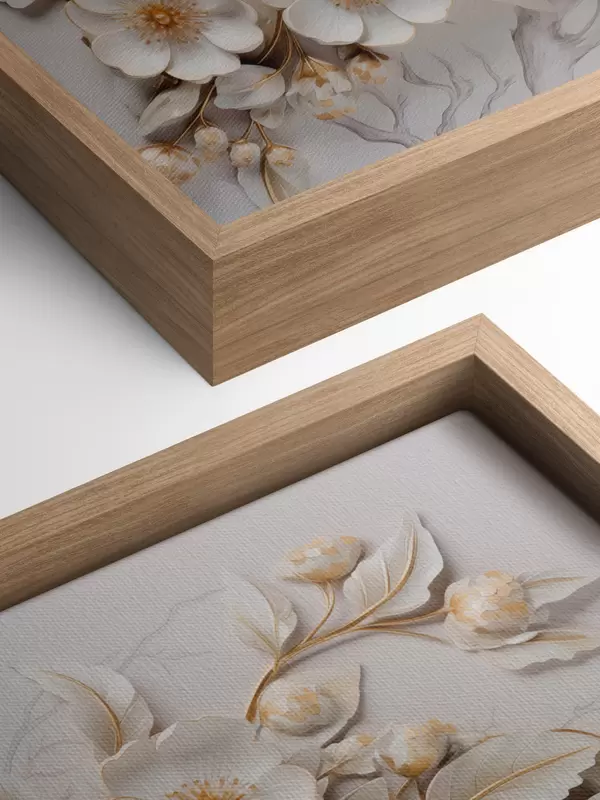 Schilderijen 3d witte bloemen in een klassieke stijl met een geel accent s43313