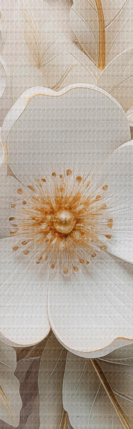 Schilderij 3d witte bloemen in een klassieke stijl met een geel accent Art. s43313