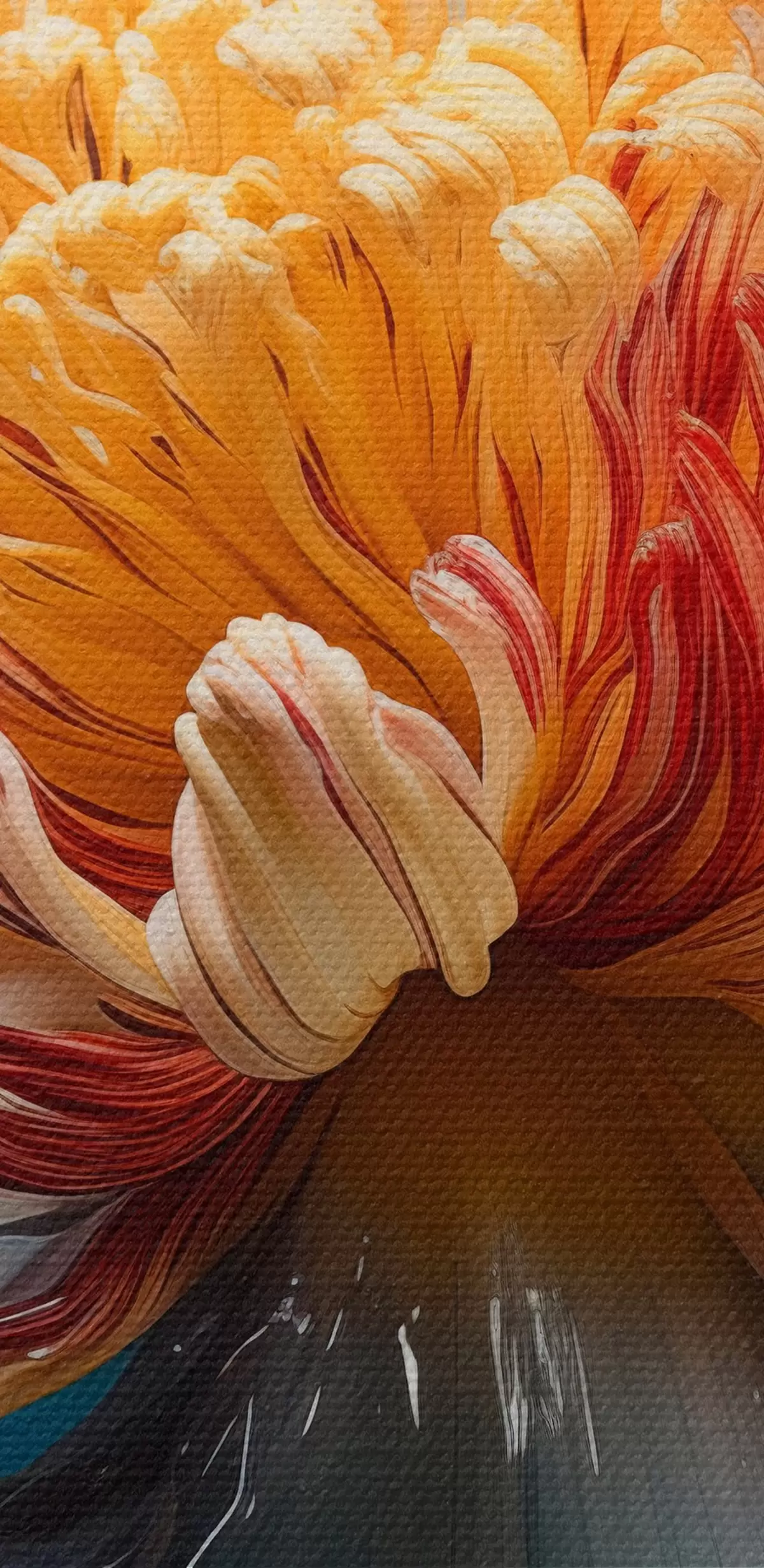 Het schilderij kan direct na ontvangst worden opgehangen. Het schilderij wordt opgespannen op een 2 cm breed houten spieraam.