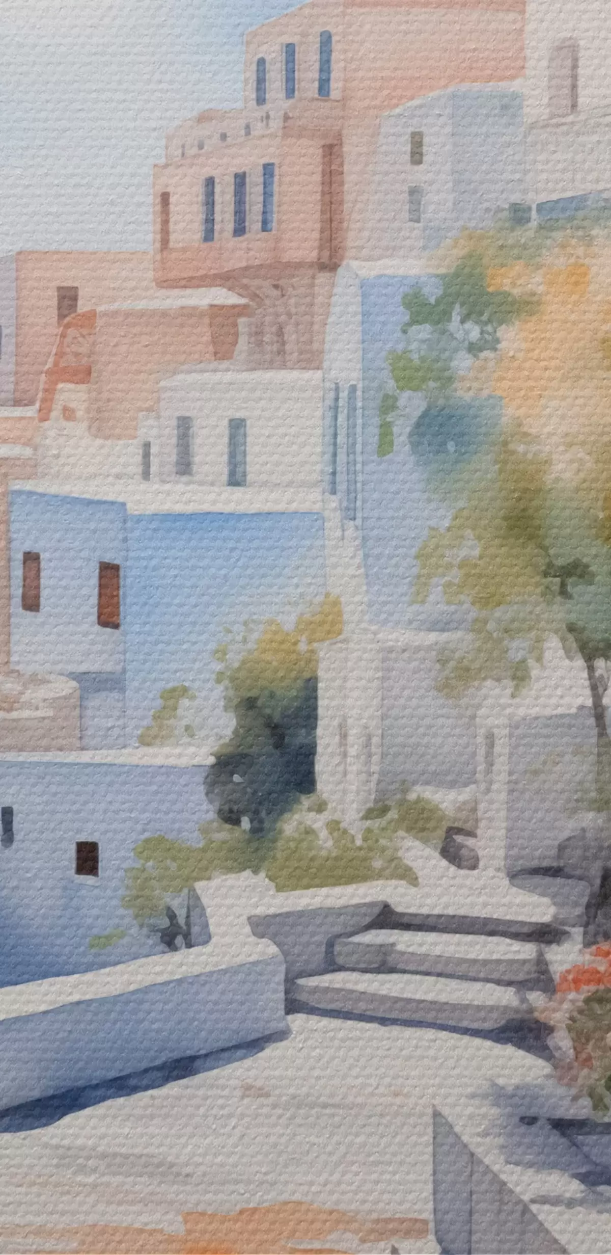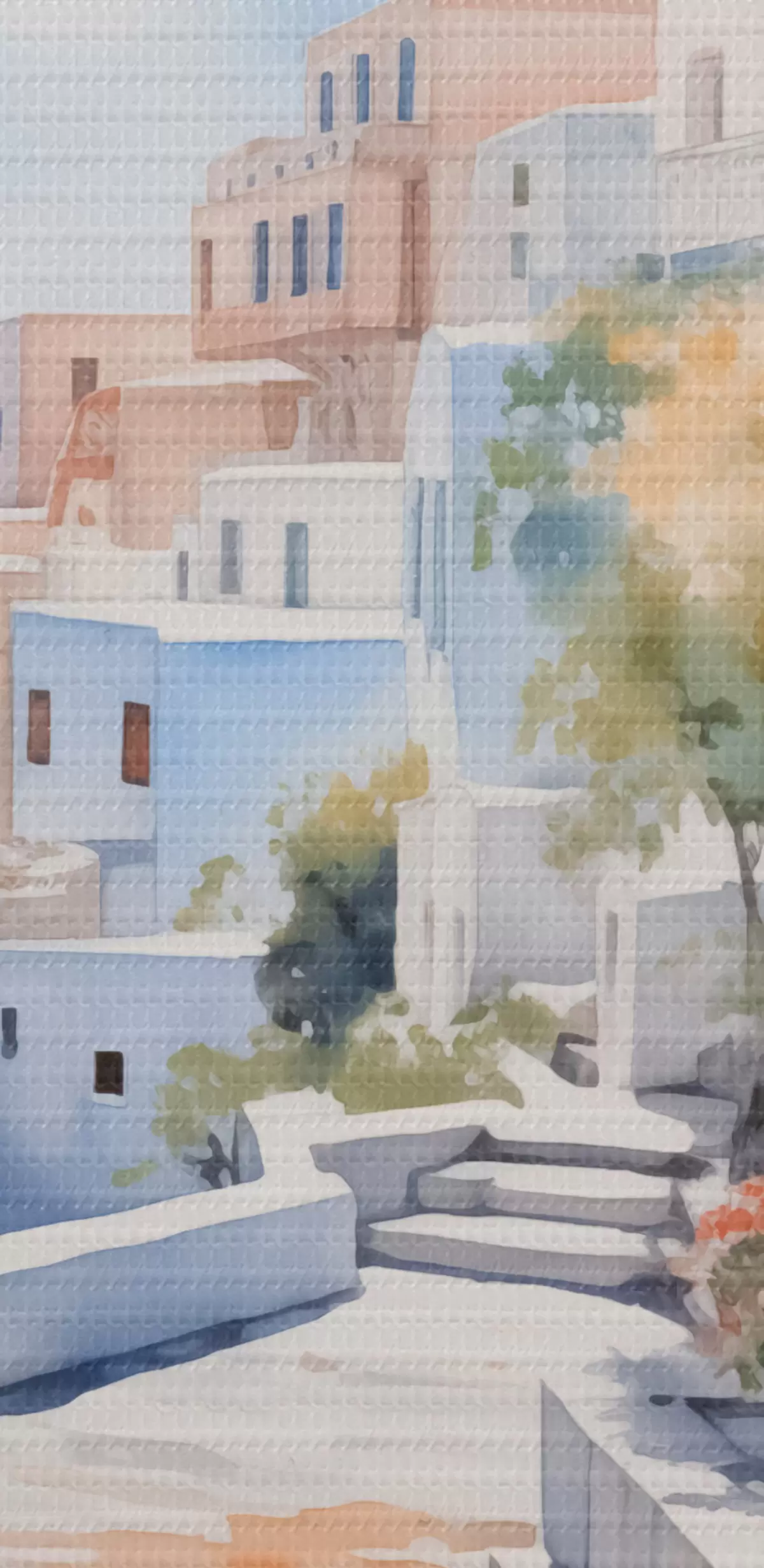 Schilderij Huizen aan zee imitatie van aquarel Art. s43346