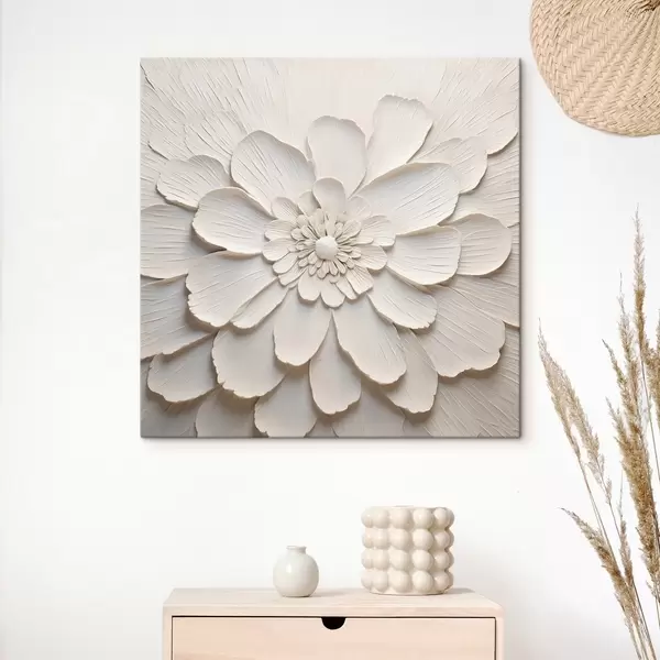 Schilderij Grote witte bloem met volumineuze bloemblaadjes Art. s43364