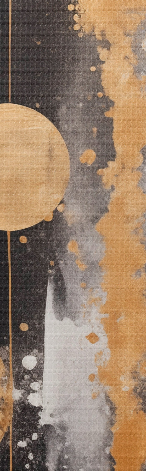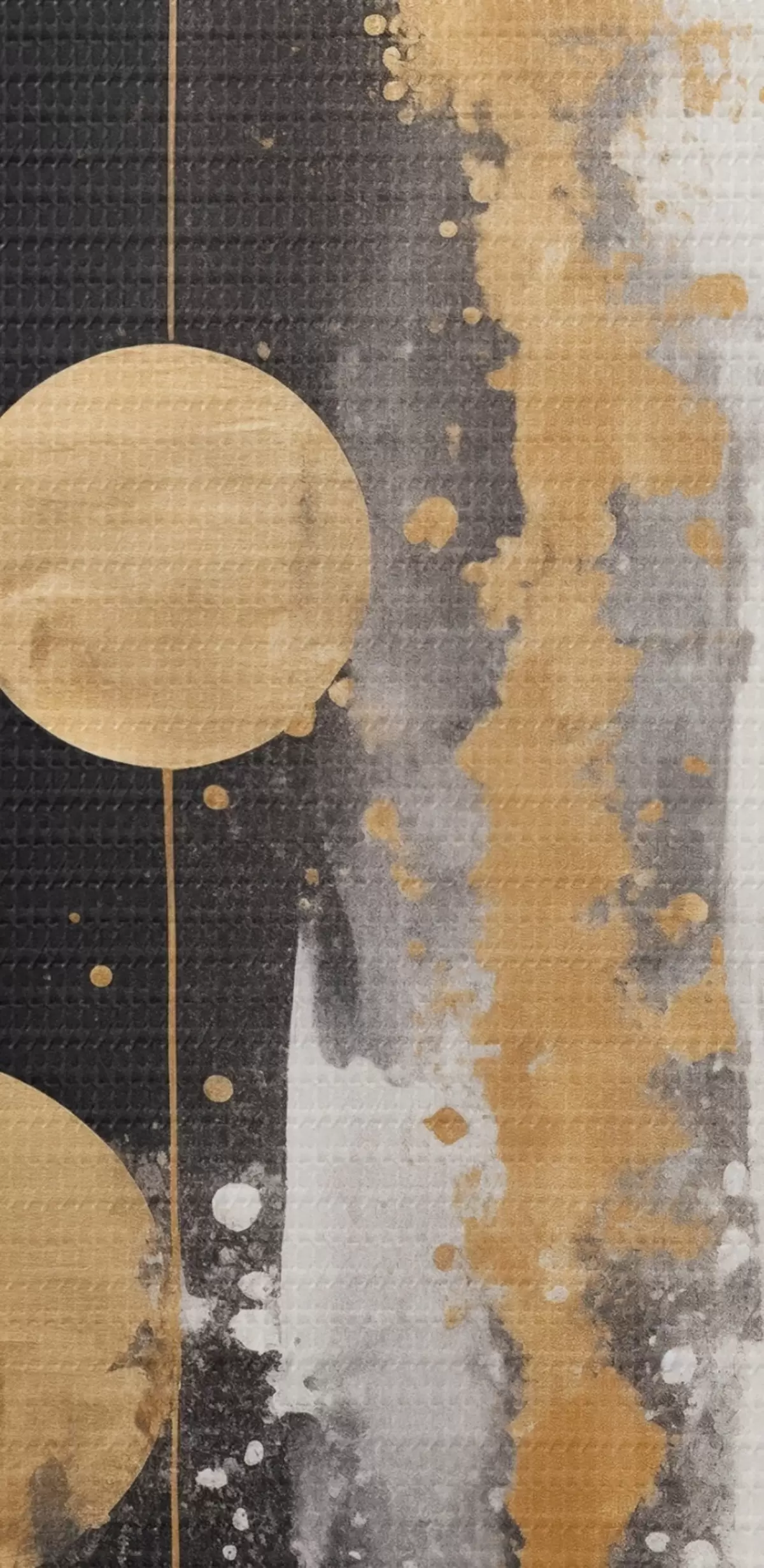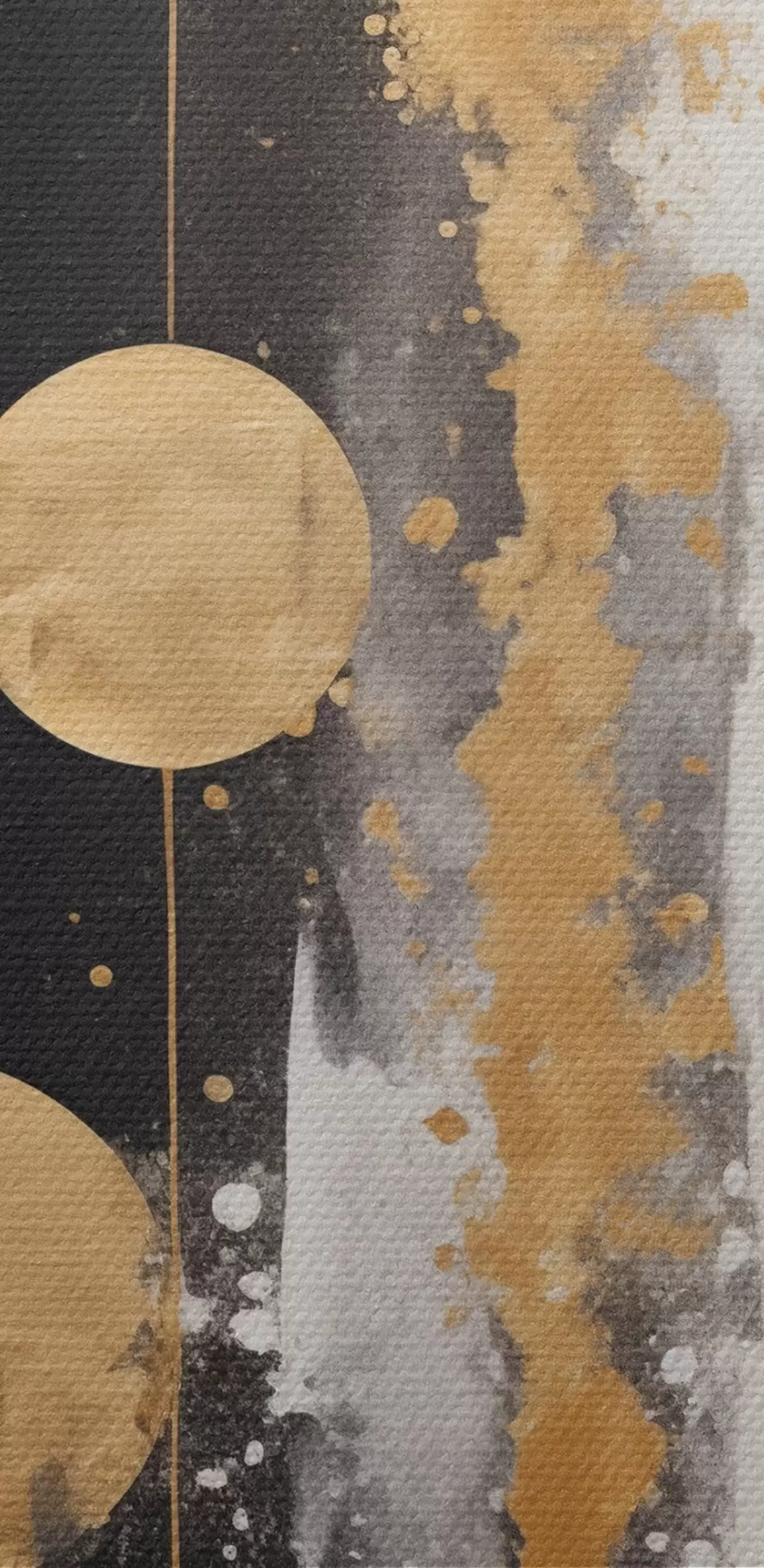 Schilderij Abstracte kunst met gele cirkels op zwarte en witte achtergrond met witte en gele vlekken Art. s43410