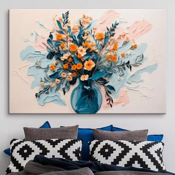 Schilderij Bloemen in transparante vaas in olieverfschilderijstijl Art. s43443