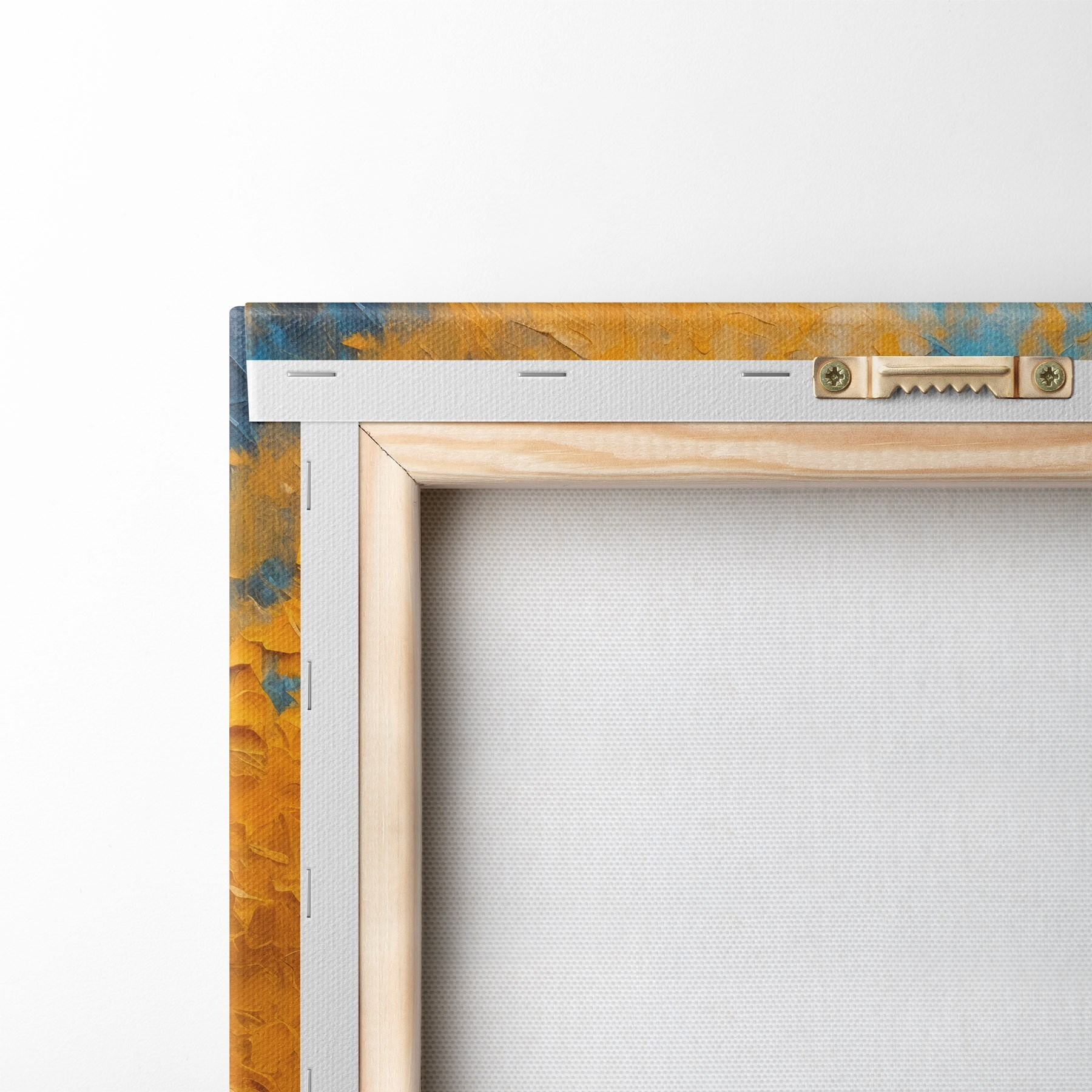 Het schilderij kan direct na ontvangst worden opgehangen. Het schilderij wordt opgespannen op een 2 cm breed houten spieraam.