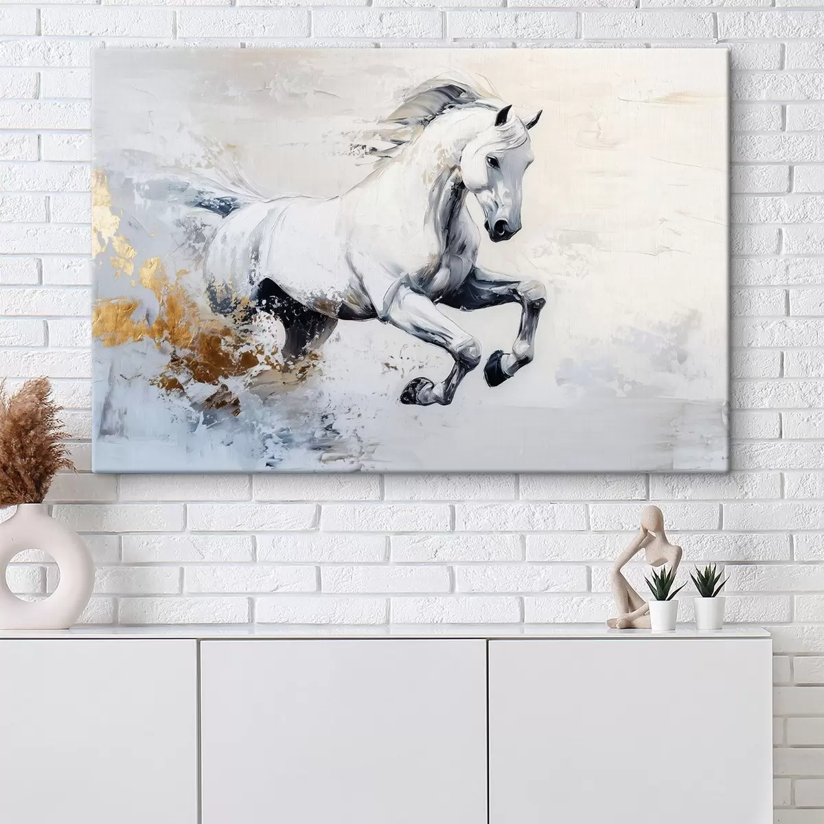 Schilderijen Lopend wit paard, olieverf tekening, dieren s43498