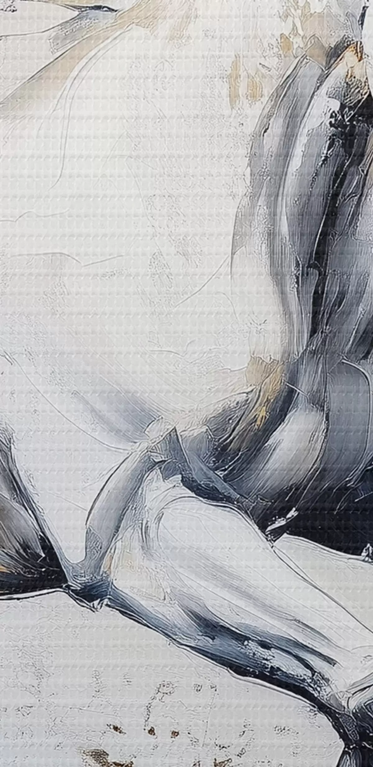 Schilderij Lopend wit paard, olieverf tekening, dieren Art. s43498