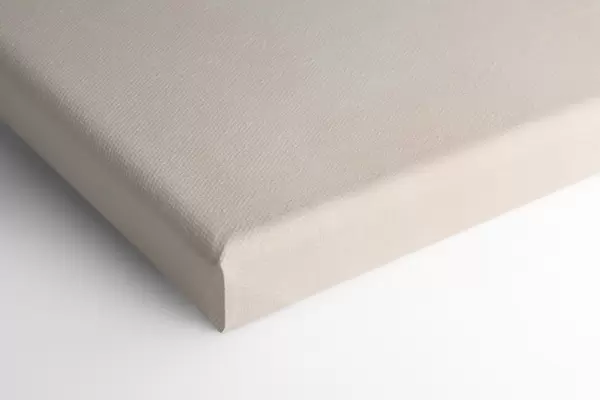 De fijne weving van draden op dit doek lijkt op het oppervlak van professionele schildersdoeken.