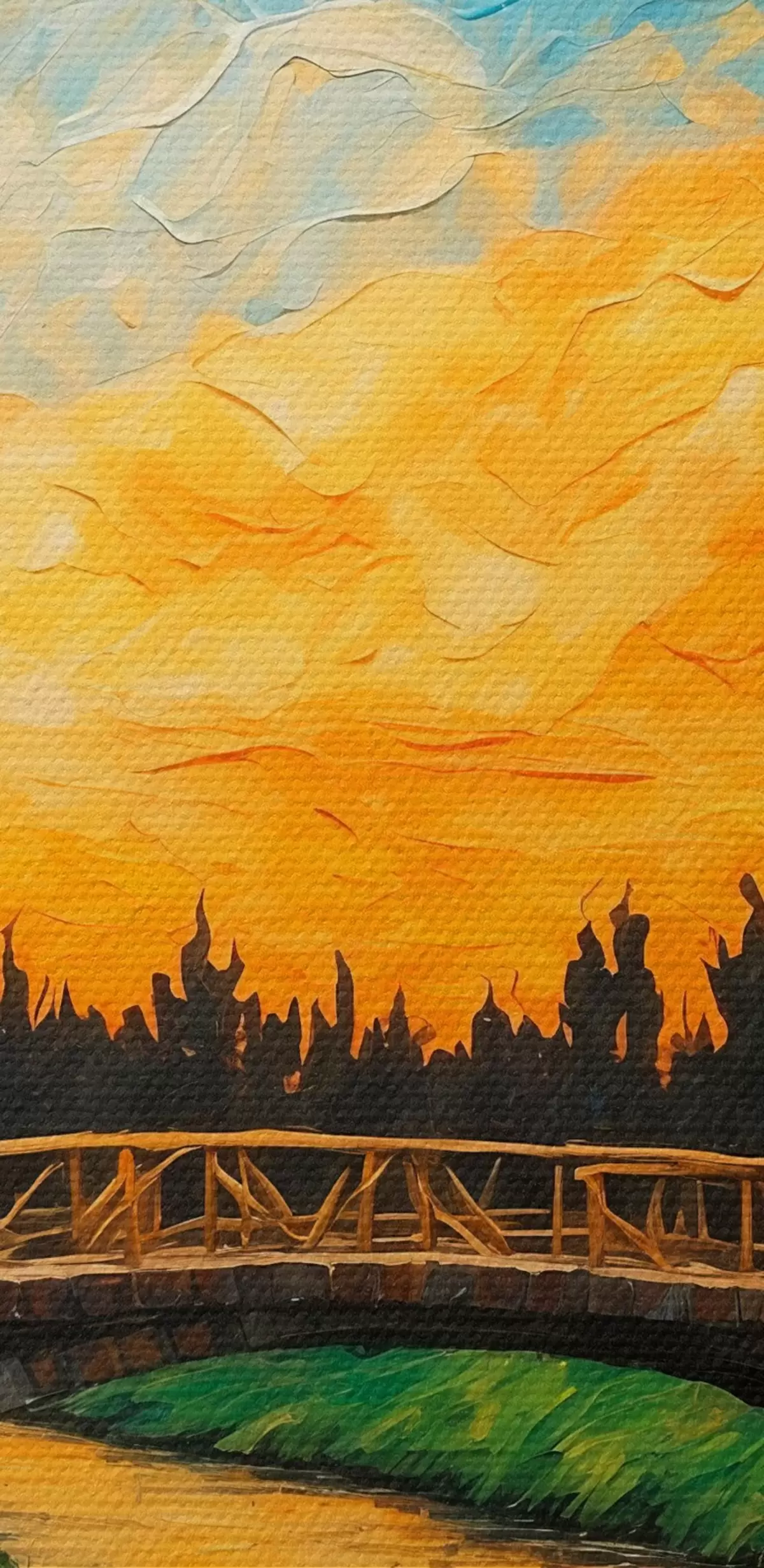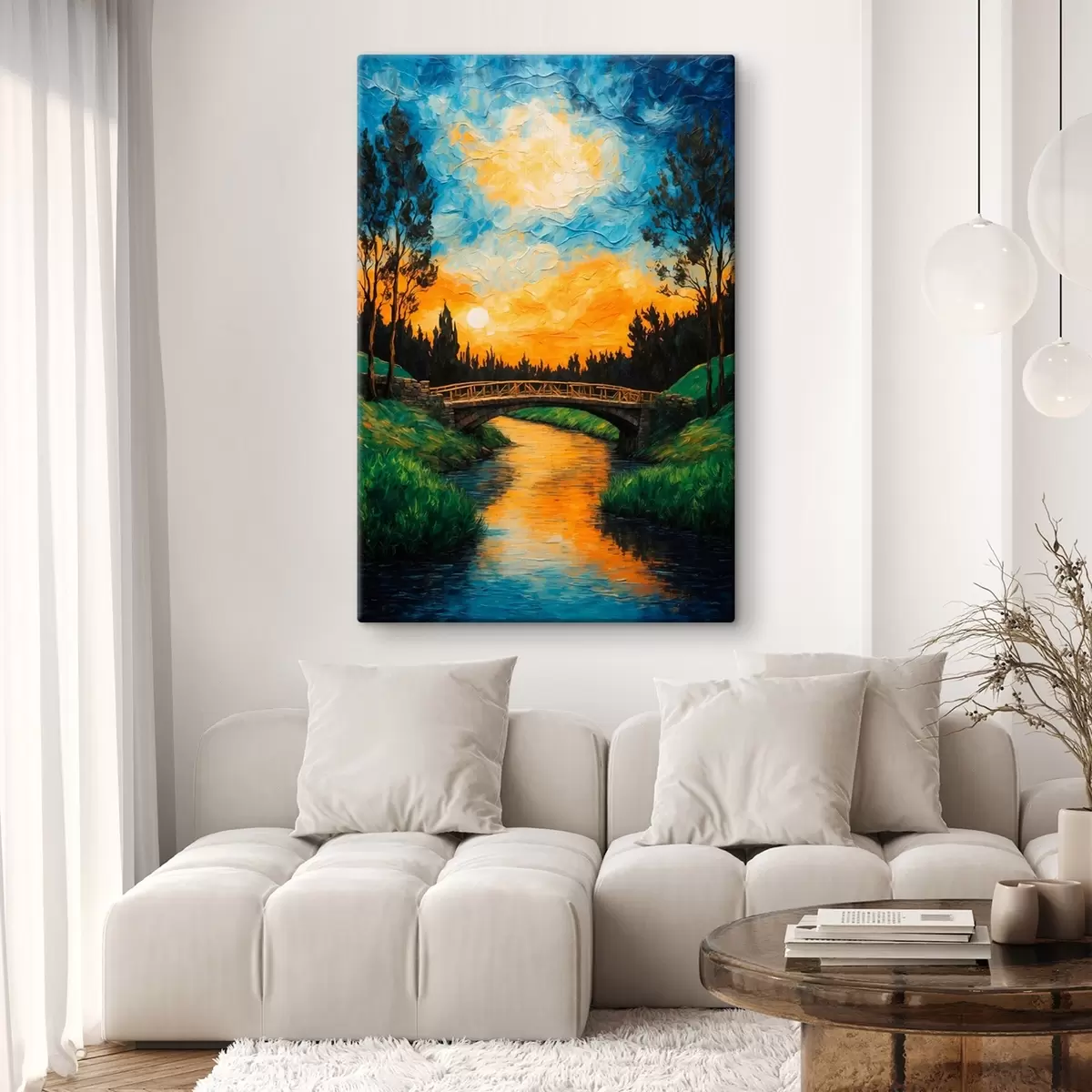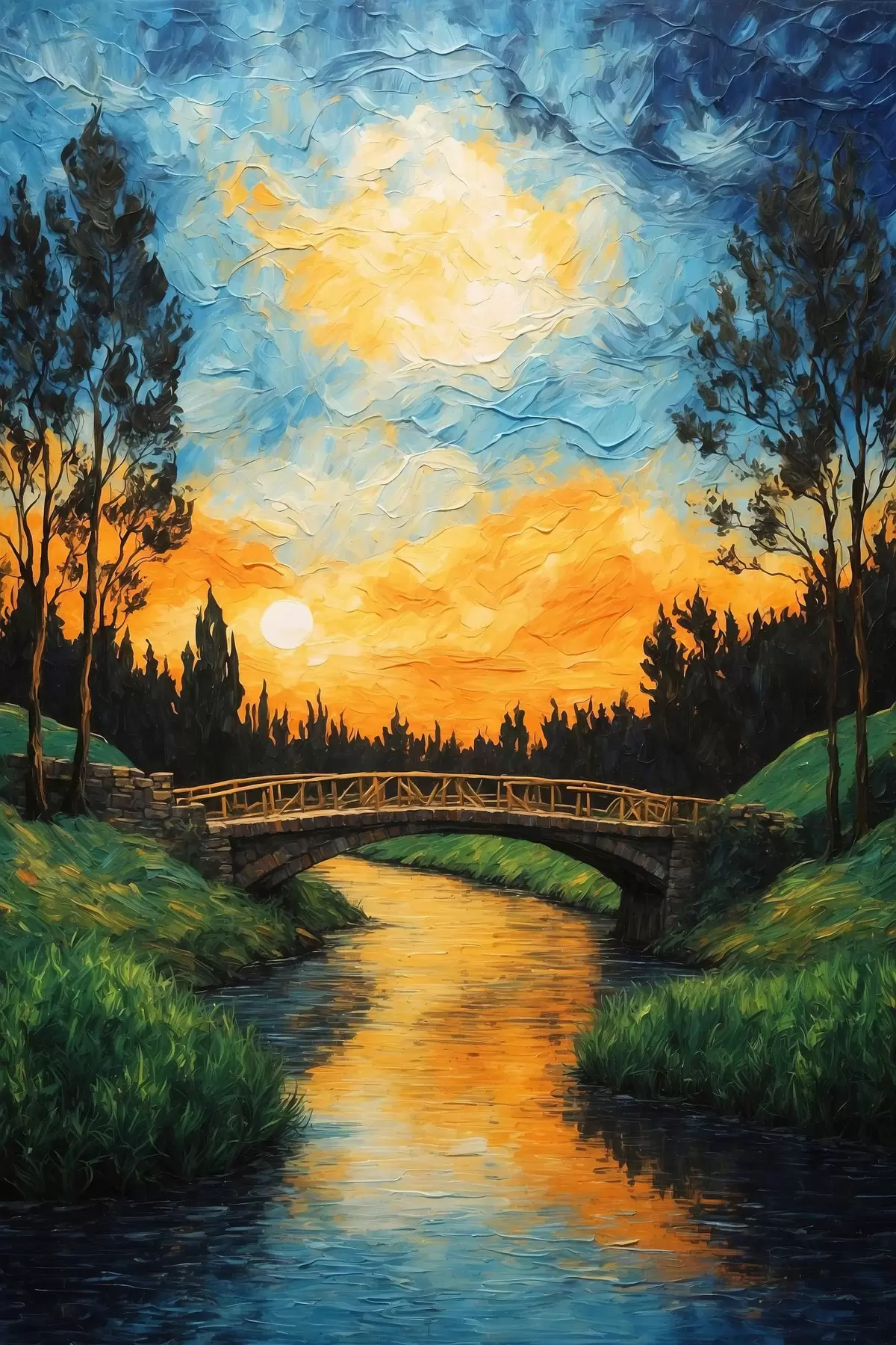 Schilderij Brug in bos in acrylschilderstijl Art. s43868