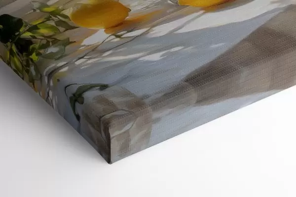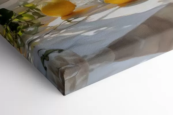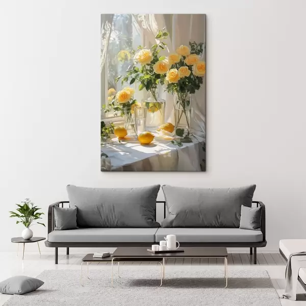 Schilderij Rozen in vazen, tekening in olieverfstijl, zacht zonlicht, citroenen, lente Art. s43887
