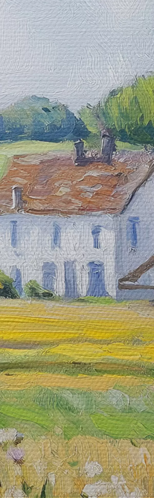 Het schilderij kan voorzichtig worden schoongeveegd met een droge zachte doek of spons; het wordt niet aanbevolen om natte producten te gebruiken. Het gebruik van een vochtige spons is alleen toegestaan als het schilderij gevernist is.