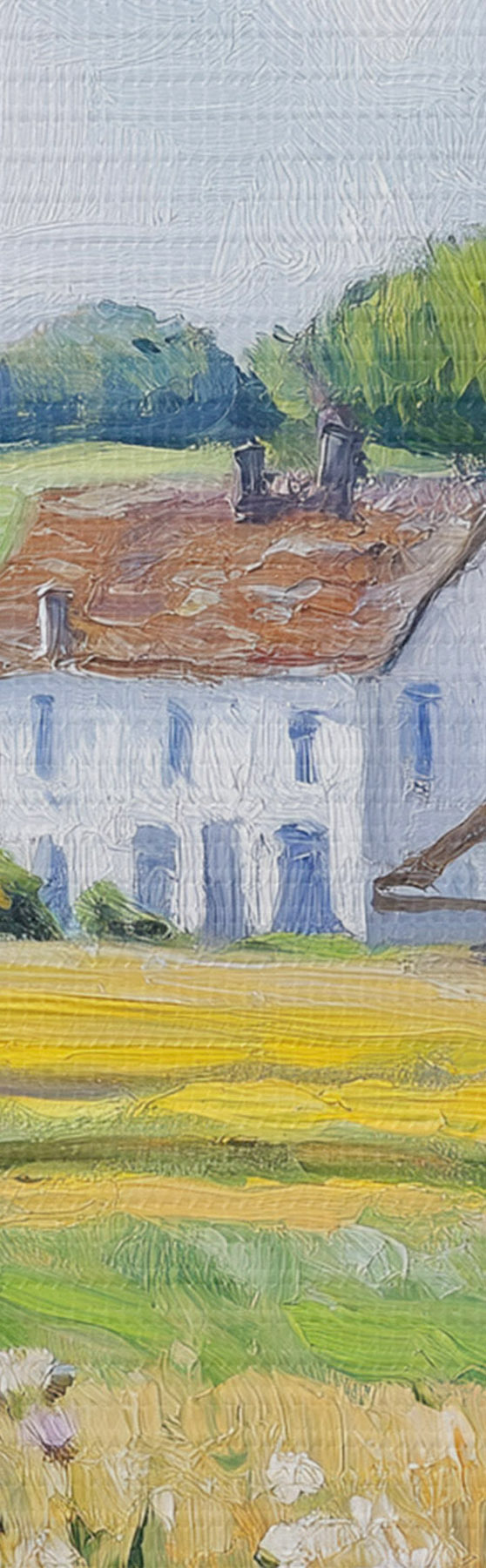 Schilderij Dorpslandschappen in het houten venster, bloemen, velden, olieverfstijl, boerderij Art. s43888