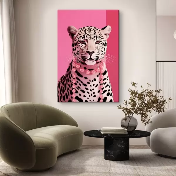 Schilderij Portret van een luipaard met roze ketting Art. s43976