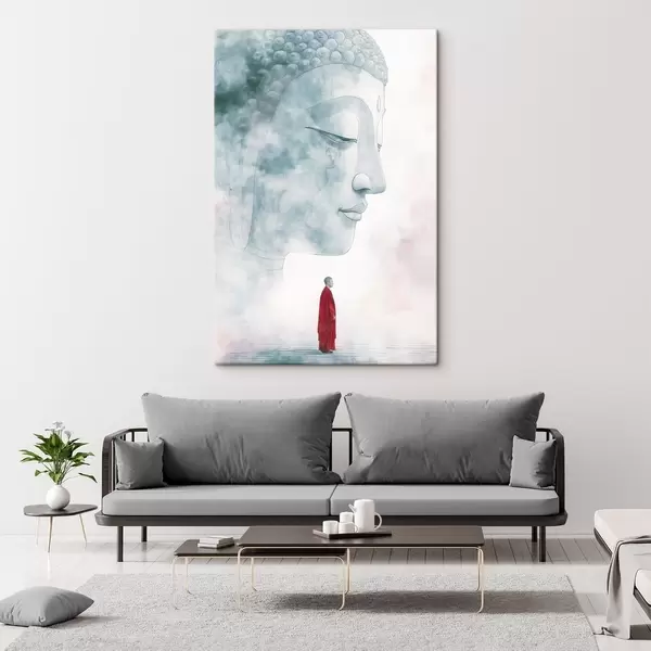 Schilderij Boeddhistische monnik in rood gewaad, Boeddha-silhouet, aquarelstijl Art. s44006