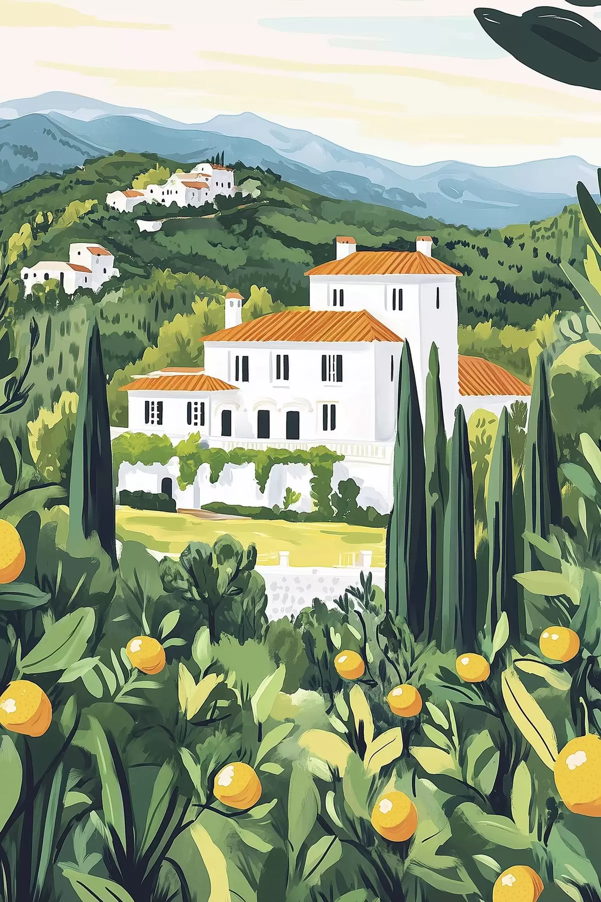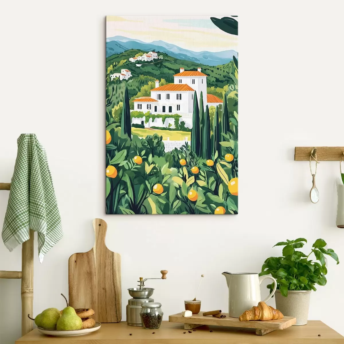 Schilderij Zomernatuur, mediterraan, citroenbomen, architecturaal Art. s44028
