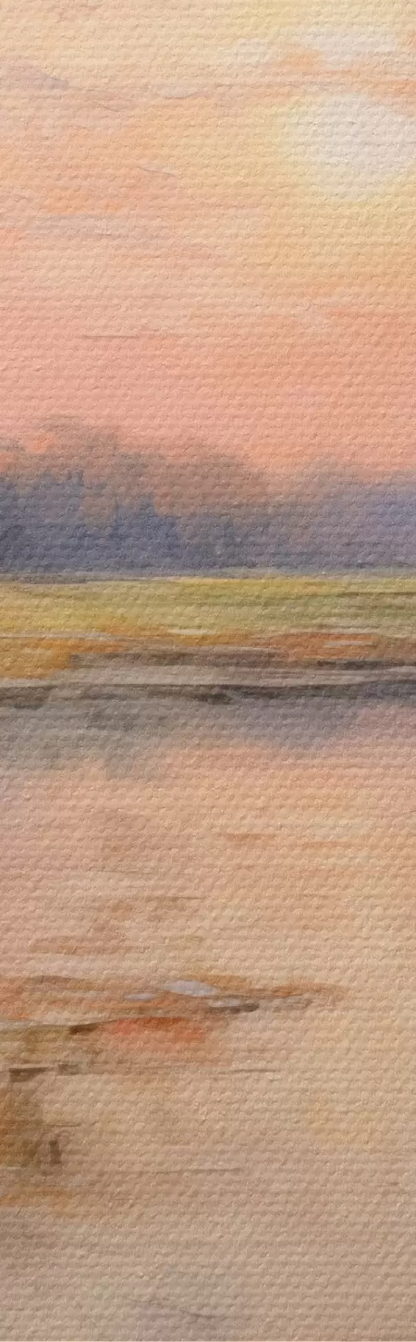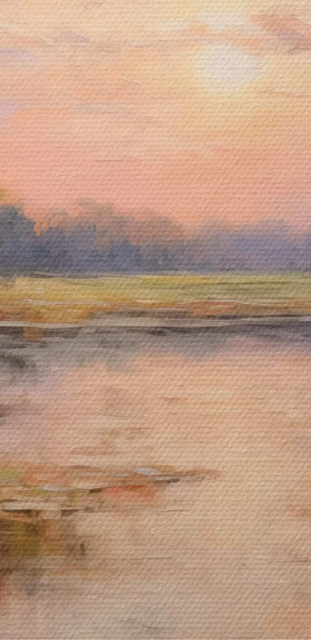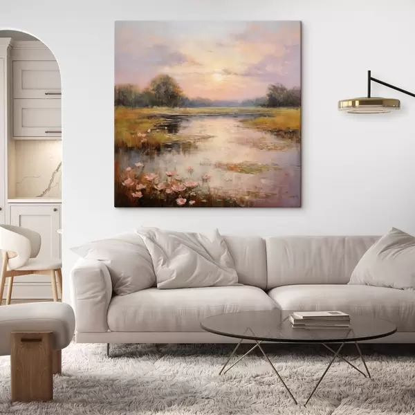 Schilderij Waterlichaam met bloemen bij zonsondergang Art. s44044