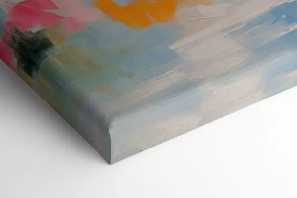 Het schilderij kan direct na ontvangst worden opgehangen. Het schilderij wordt opgespannen op een 2 cm breed houten spieraam.