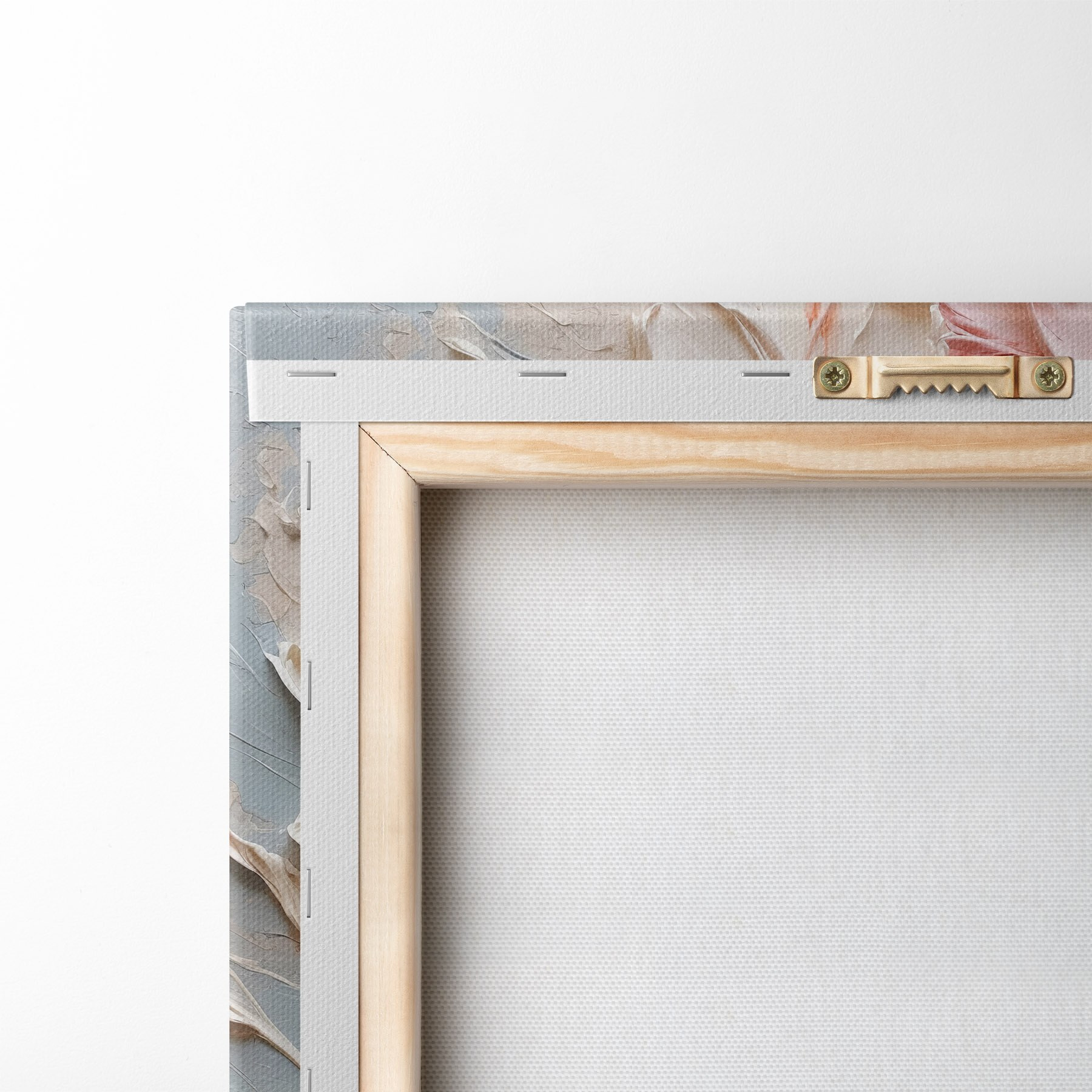 Om het doek op te spannen op spielatten zonder de afbeelding te beschadigen, gebruiken we gespiegeld beeld.