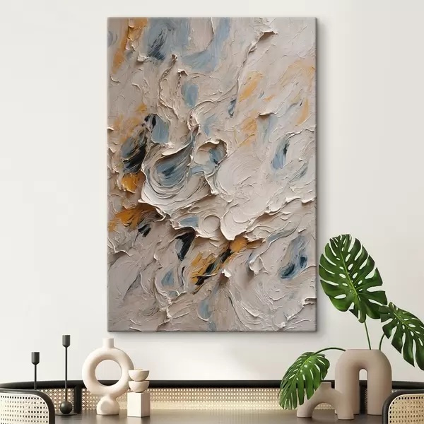 Schilderij Abstract olieverfschilderij in witte en blauwe kleuren Art. s44078