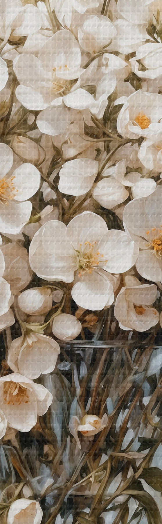 Schilderij Witte bloemen in transparante vaas Art. s44092