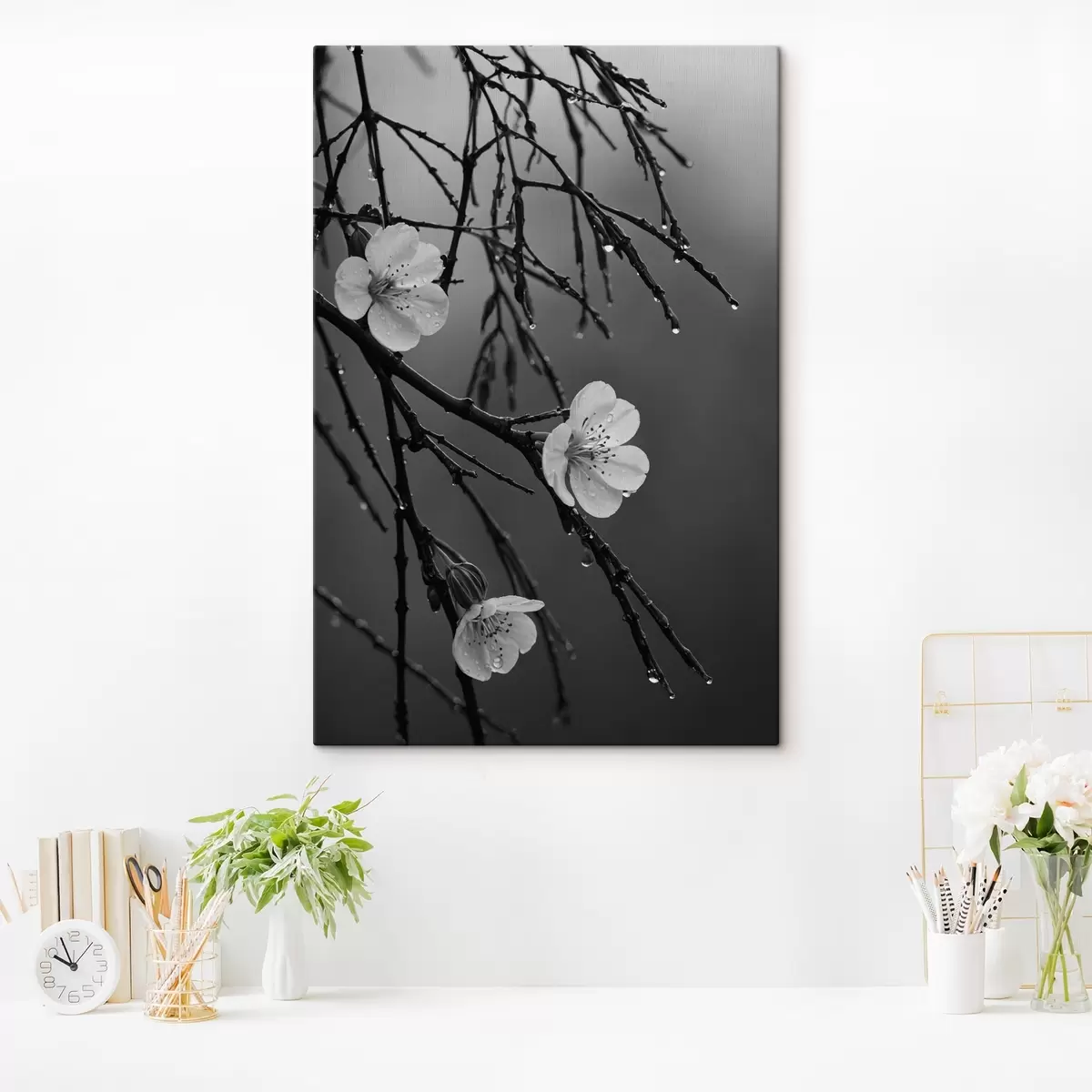 Schilderij Bloemen op de takken na de regen Art. s44098