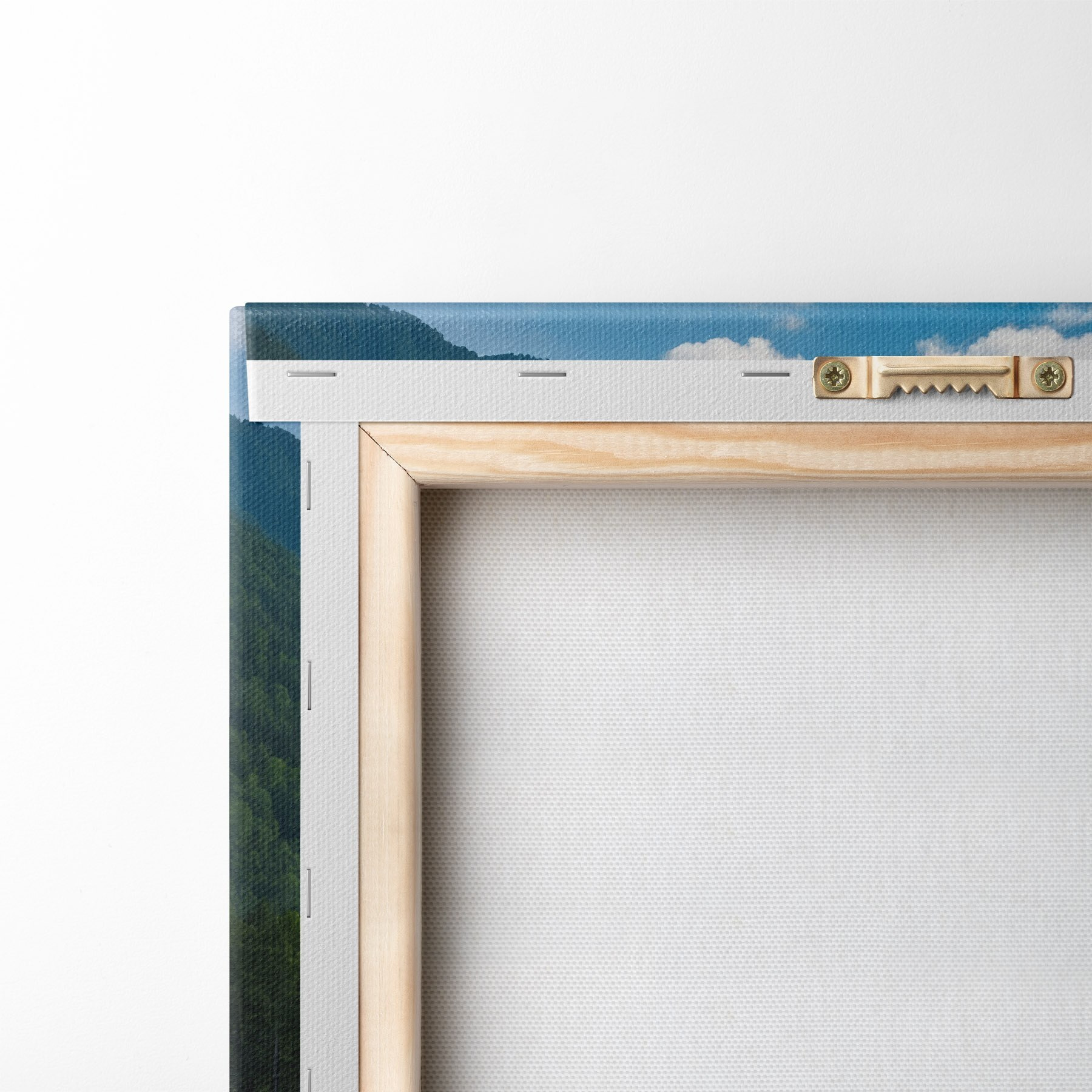 Je kunt het schilderij ophangen aan schroeven. Hiervoor leveren we bevestigingen bij onze foto's, zodat je de foto gemakkelijk kunt ophangen.