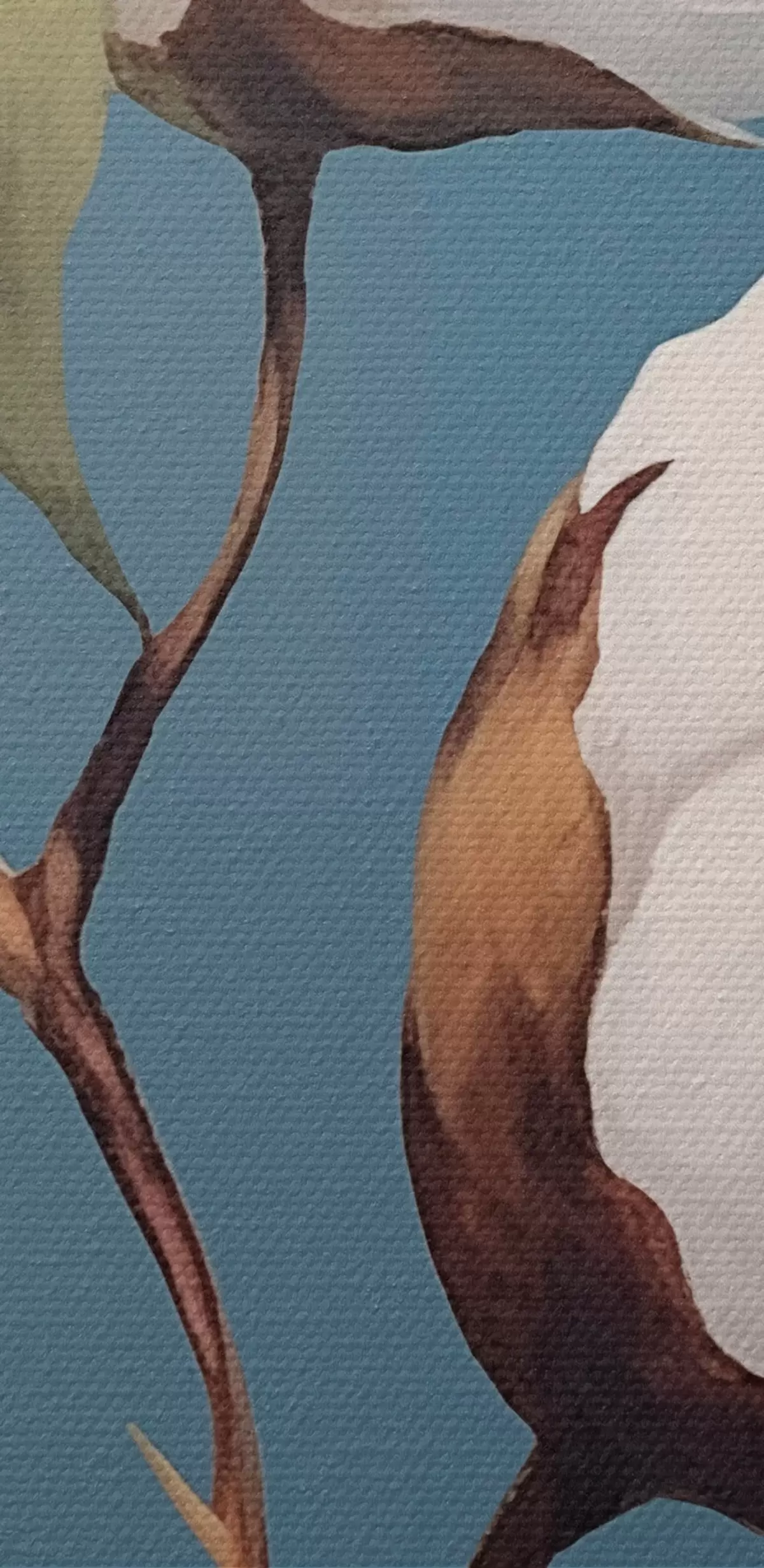 De fijne weving van draden op dit doek lijkt op het oppervlak van professionele schildersdoeken.
