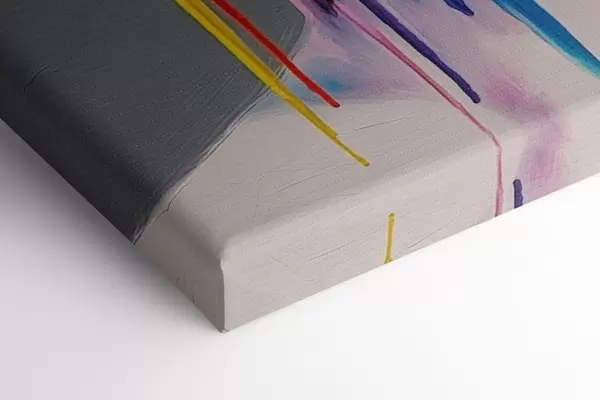 Het schilderij kan direct na ontvangst worden opgehangen. Het schilderij wordt opgespannen op een 2 cm breed houten spieraam.