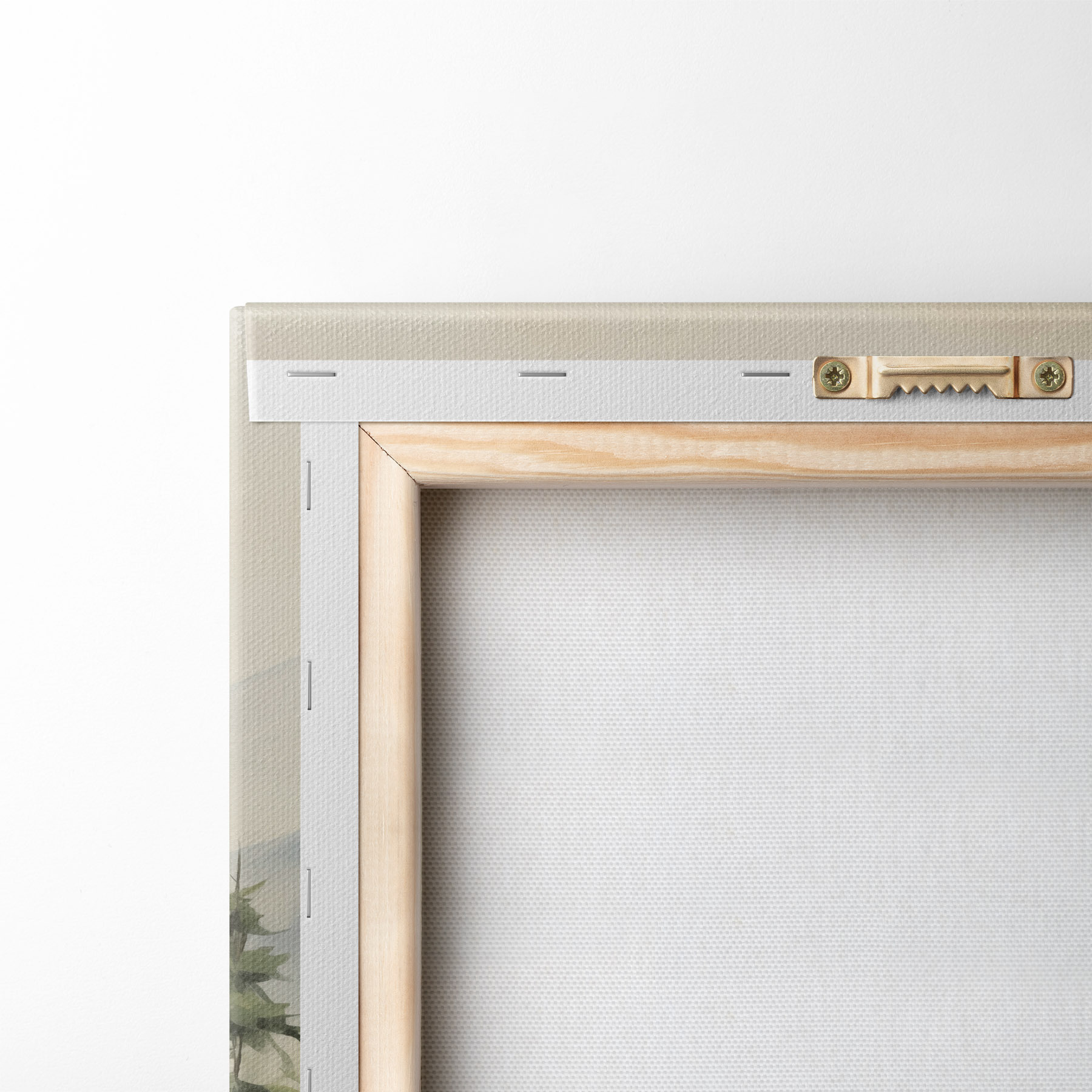 Je kunt het schilderij ophangen aan schroeven. Hiervoor leveren we bevestigingen bij onze foto's, zodat je de foto gemakkelijk kunt ophangen.