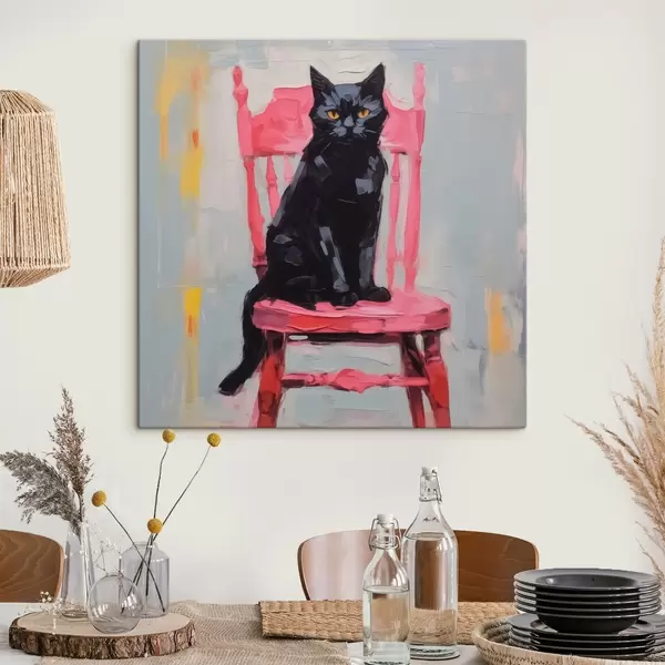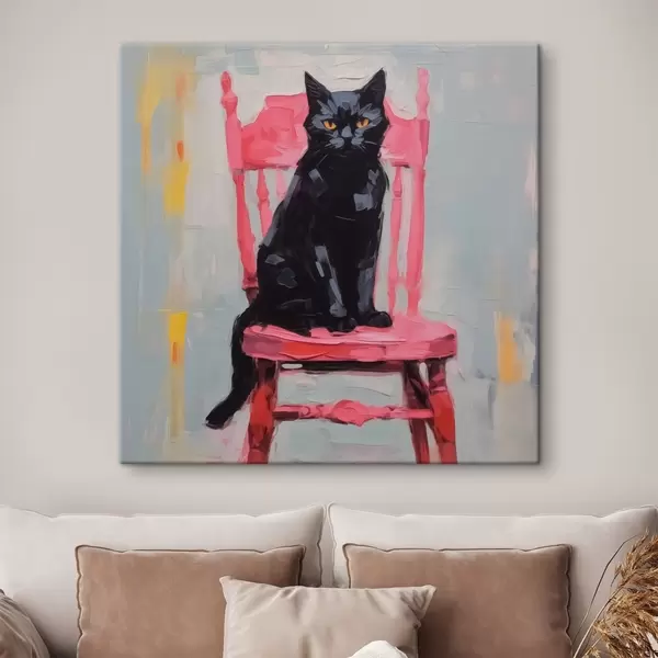 Schilderij Zwarte kat op een stoel Art. s44130