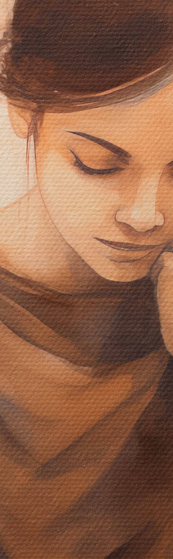 Het schilderij kan voorzichtig worden schoongeveegd met een droge zachte doek of spons; het wordt niet aanbevolen om natte producten te gebruiken. Het gebruik van een vochtige spons is alleen toegestaan als het schilderij gevernist is.