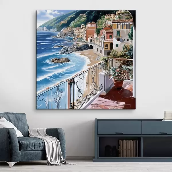 Je kunt het schilderij ophangen aan schroeven. Hiervoor leveren we bevestigingen bij onze foto's, zodat je de foto gemakkelijk kunt ophangen.