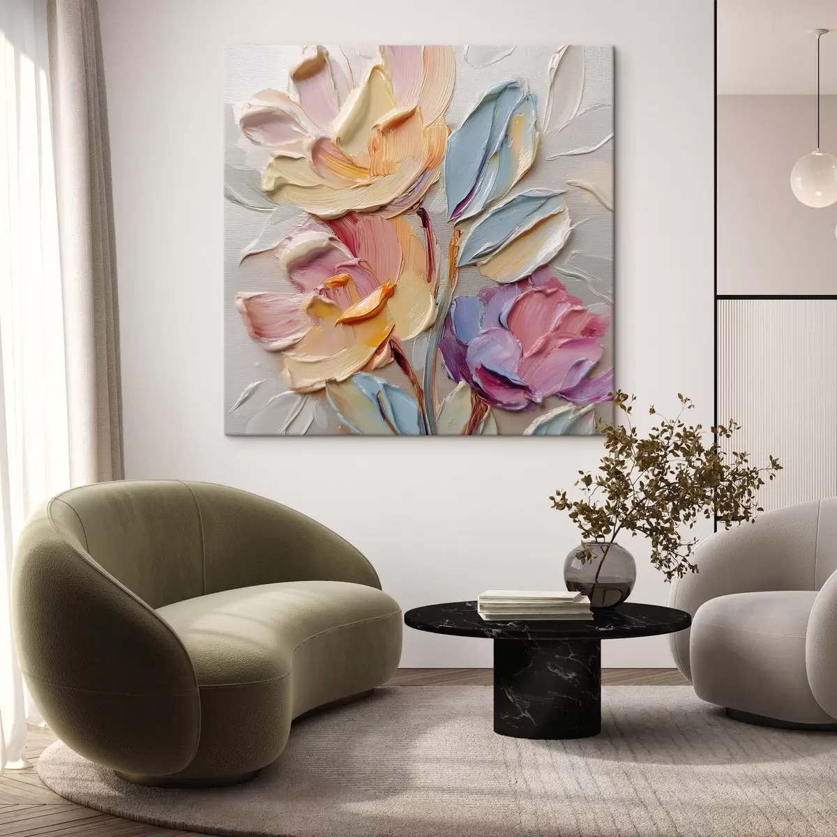 Er zijn drie soorten materiaal te bestellen: Economic Canvas - een dicht en duurzaam materiaal voor digitaal printen, identiek aan schildersdoek, waterdicht oppervlak, realistische weergave van details, materiaal met gemiddelde korrel. Premium Canvas - de textuur lijkt op die van schildersdoek (verweven kleine draden). Zachte, gedetailleerde reproductie van de afbeelding op een mat oppervlak. Eco-Premium - hoogwaardige 100% katoenen stof. Dankzij de natuurlijke katoenvezels is het materiaal duurzaam en slijtvast. Uitstekende kleurweergave en detail.