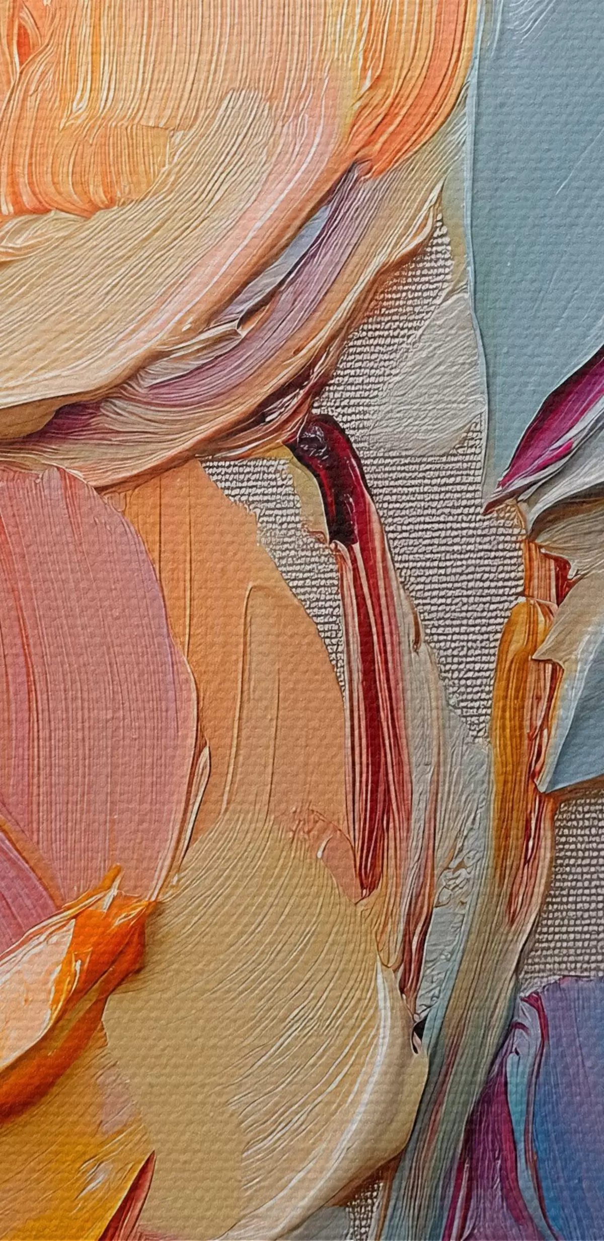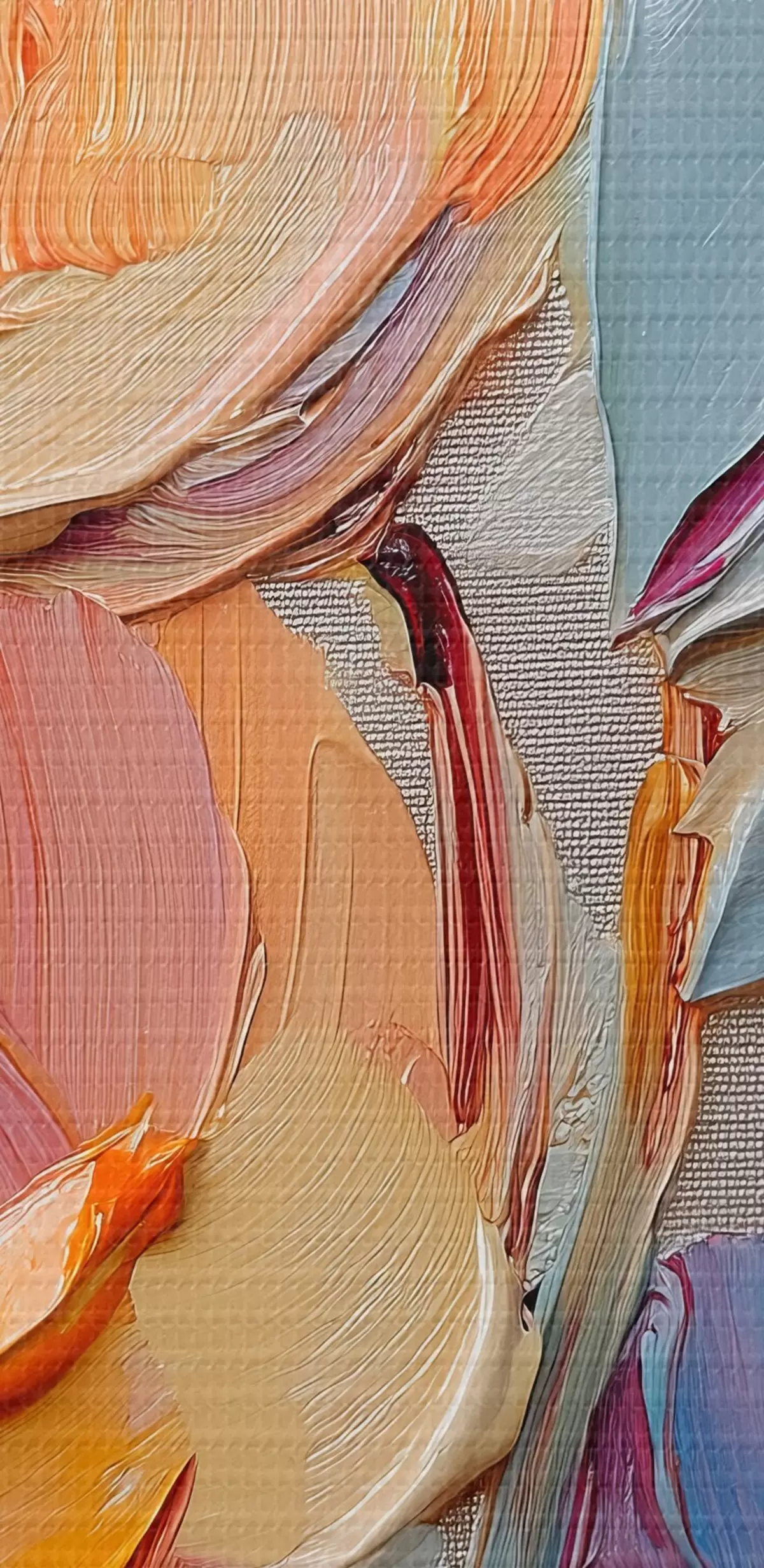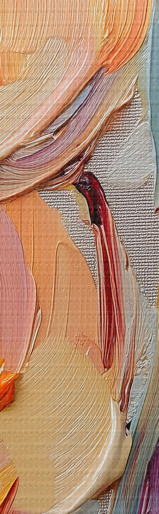 Het schilderij kan direct na ontvangst worden opgehangen. Het schilderij wordt opgespannen op een 2 cm breed houten spieraam.