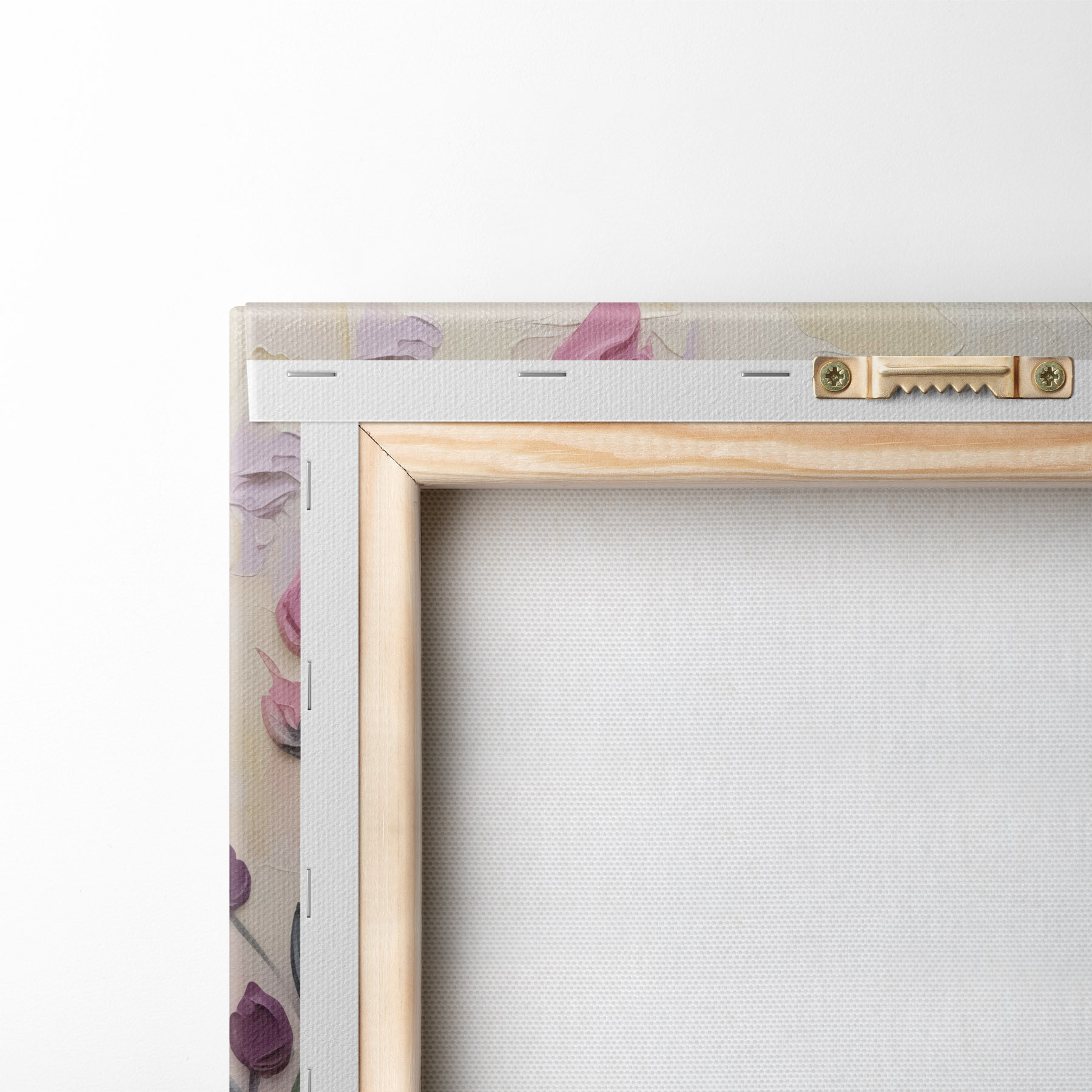 Om het doek op te spannen op spielatten zonder de afbeelding te beschadigen, gebruiken we gespiegeld beeld.