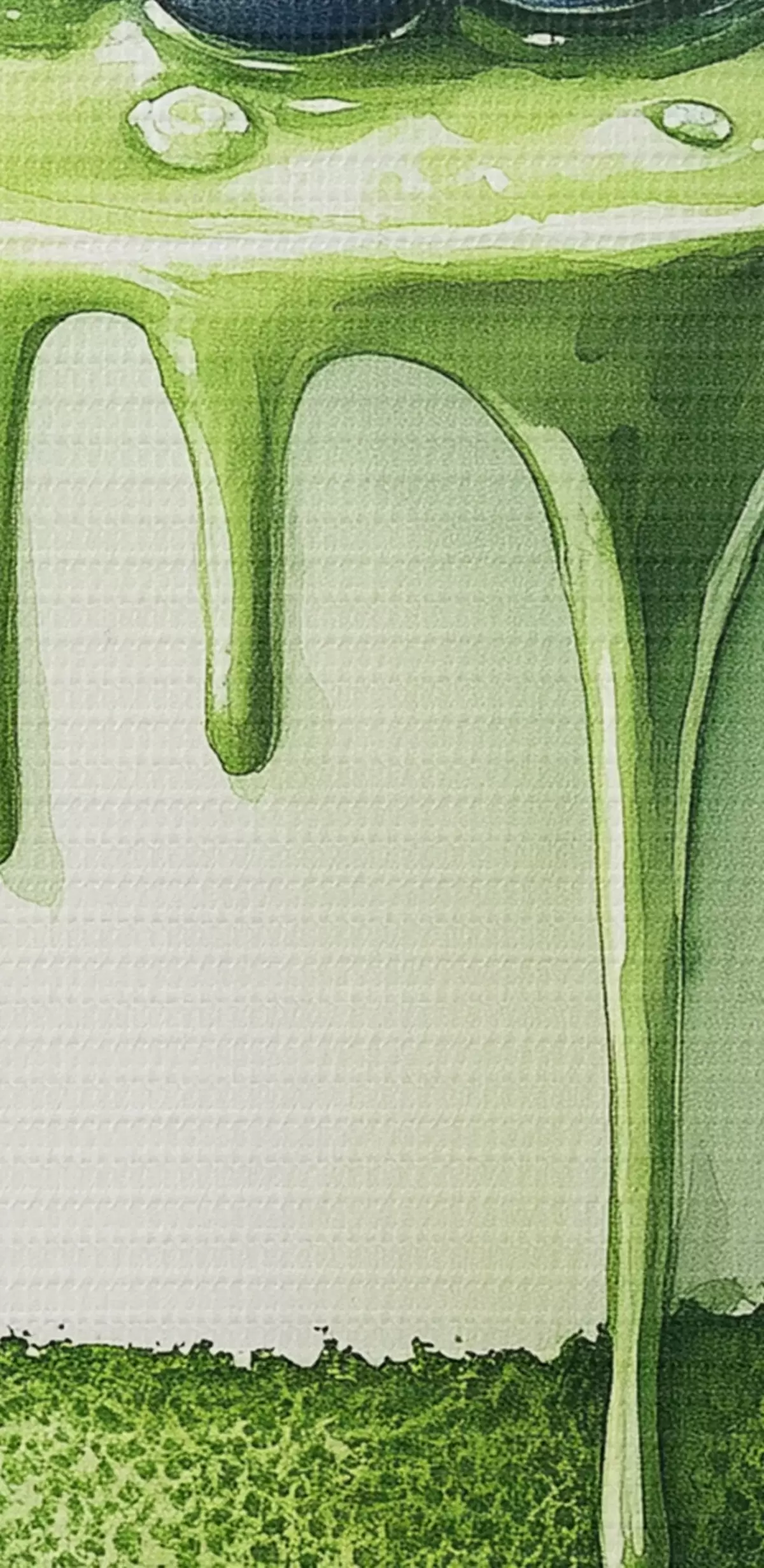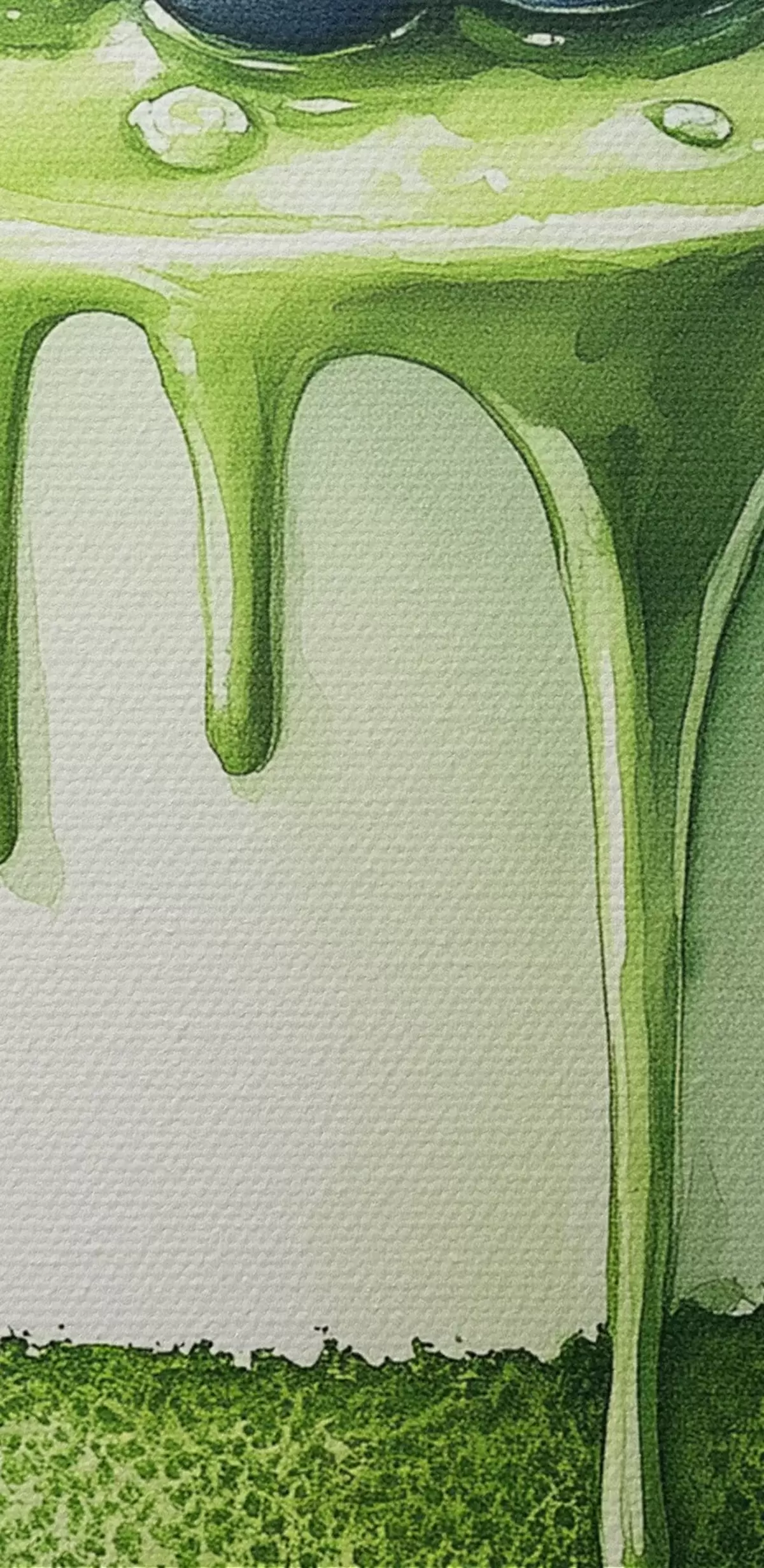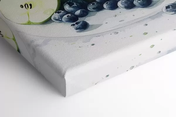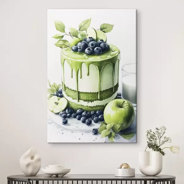 Schilderij Matcha taart met bosbessen en appels, aquarelstijl Art. s44304