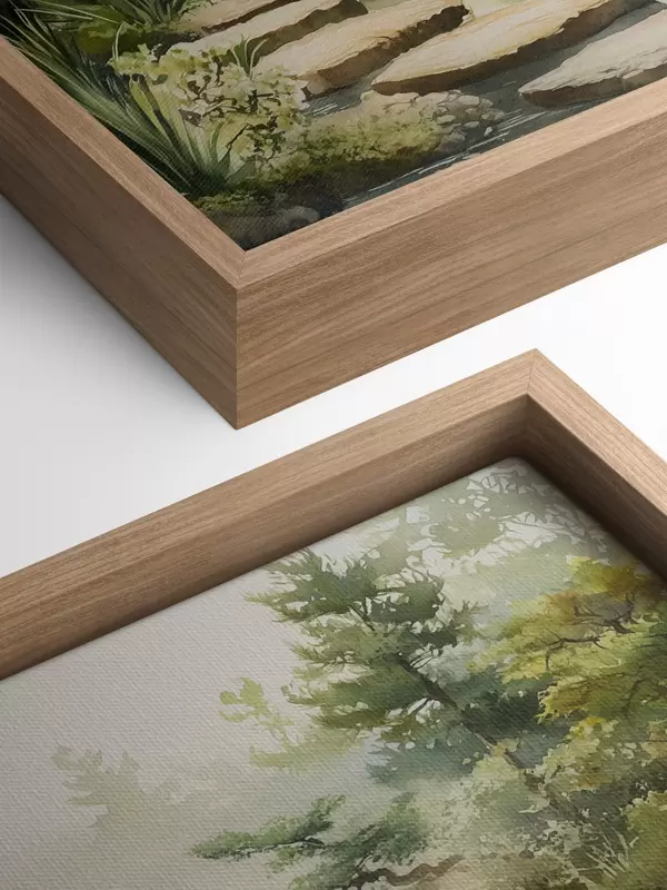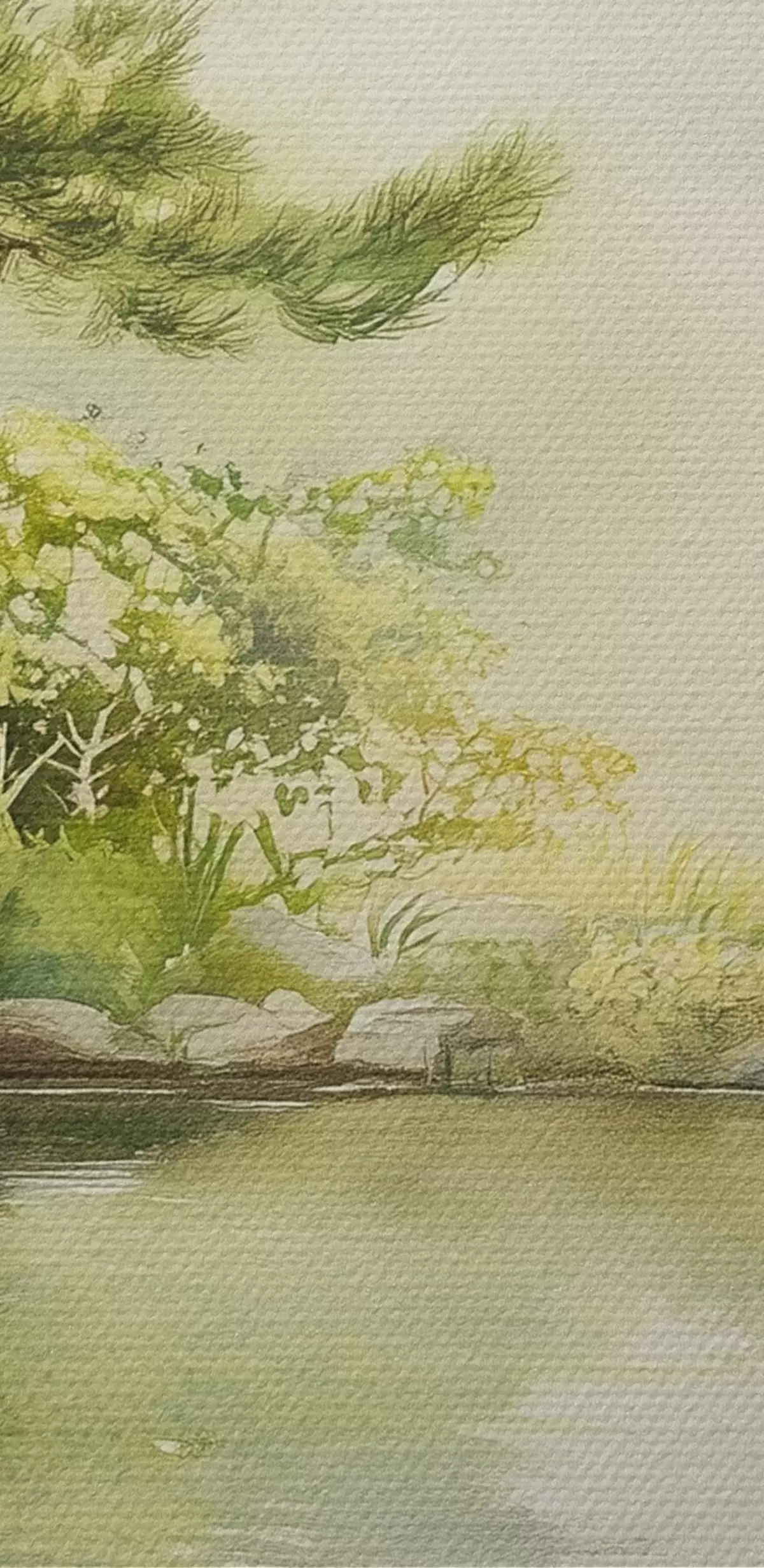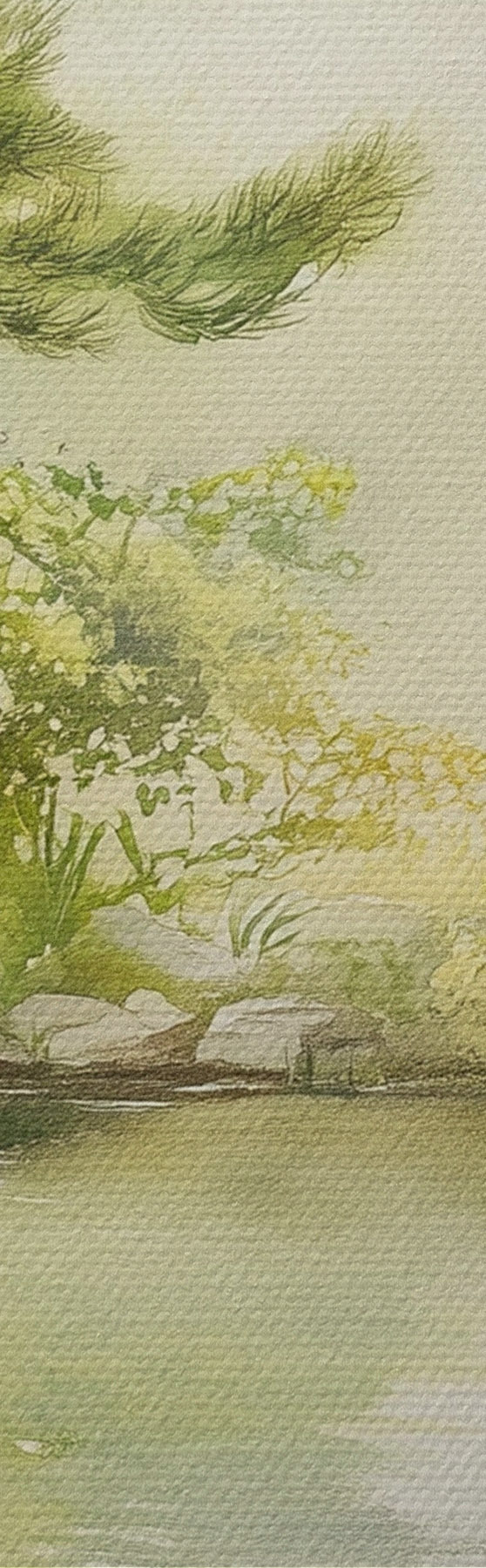 Schilderij Oosterse tuin met meer en bomen, natuur, aquarelstijl Art. s44313
