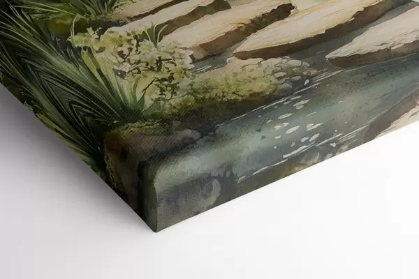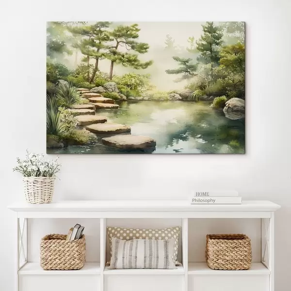 Schilderij Oosterse tuin met meer en bomen, natuur, aquarelstijl Art. s44313