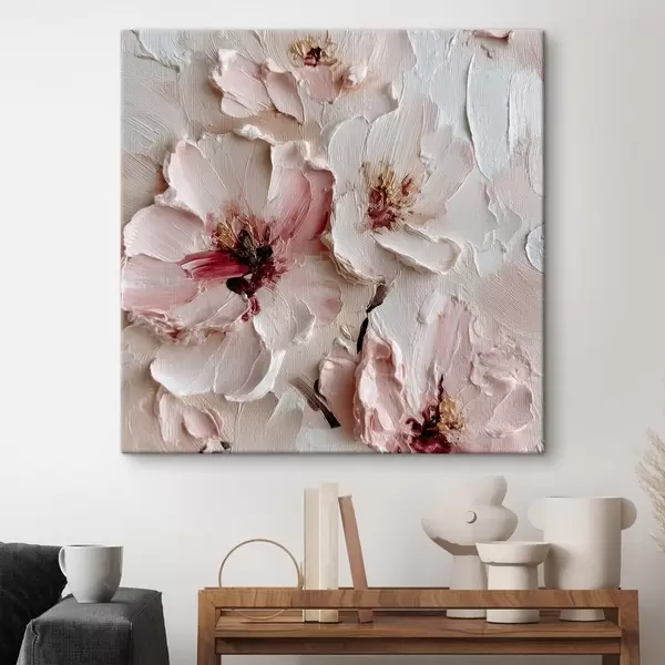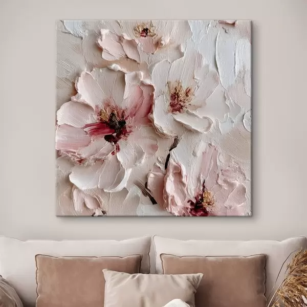 Schilderij Bloemen met impasto-imitatie in roze en witte streken Art. s44333