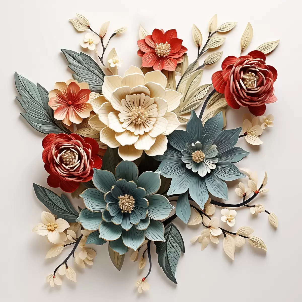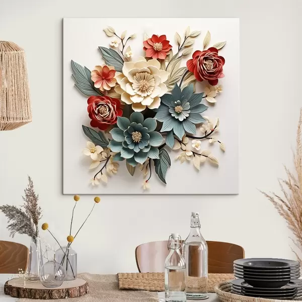 Schilderij Heldere en volumineuze 3D bloemcompositie Art. s44338