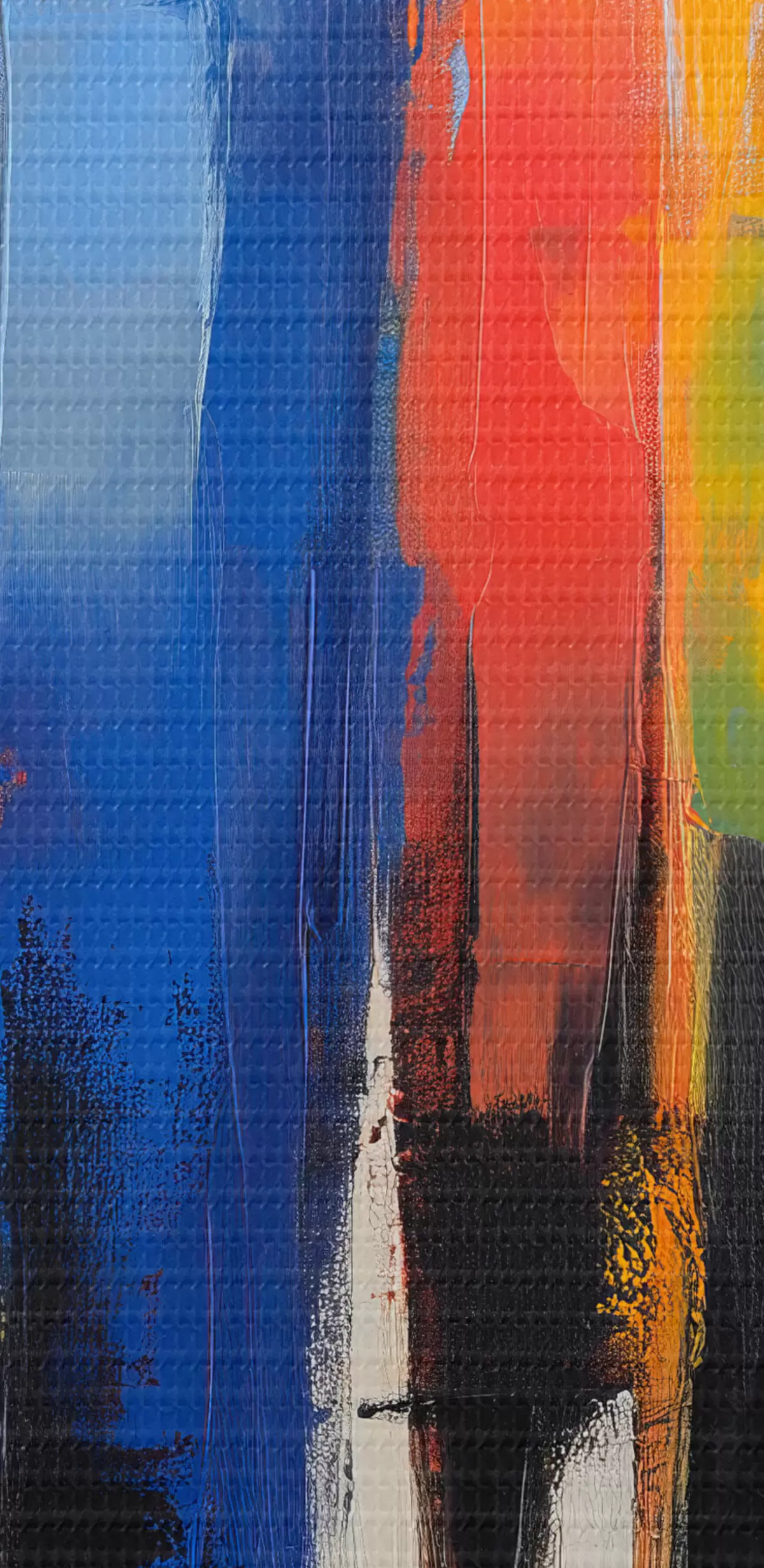 Het schilderij kan direct na ontvangst worden opgehangen. Het schilderij wordt opgespannen op een 2 cm breed houten spieraam.